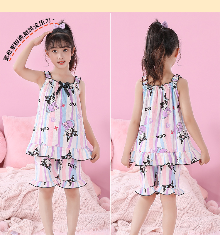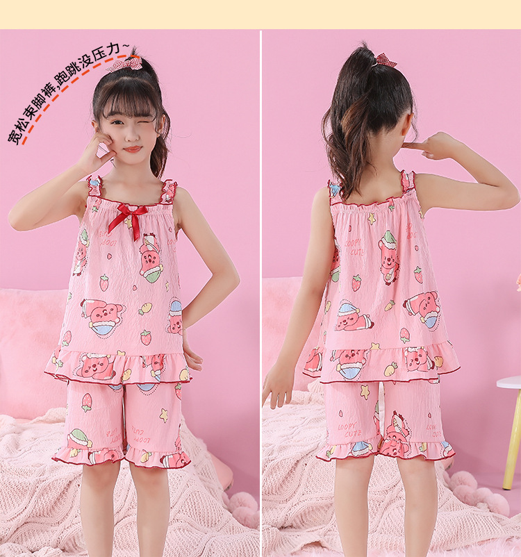 여름 조끼 슬링 잠옷 소녀 만화 달콤하고 귀여운 학생 홈웨어 세트 여성 클라우드 코튼 홈웨어