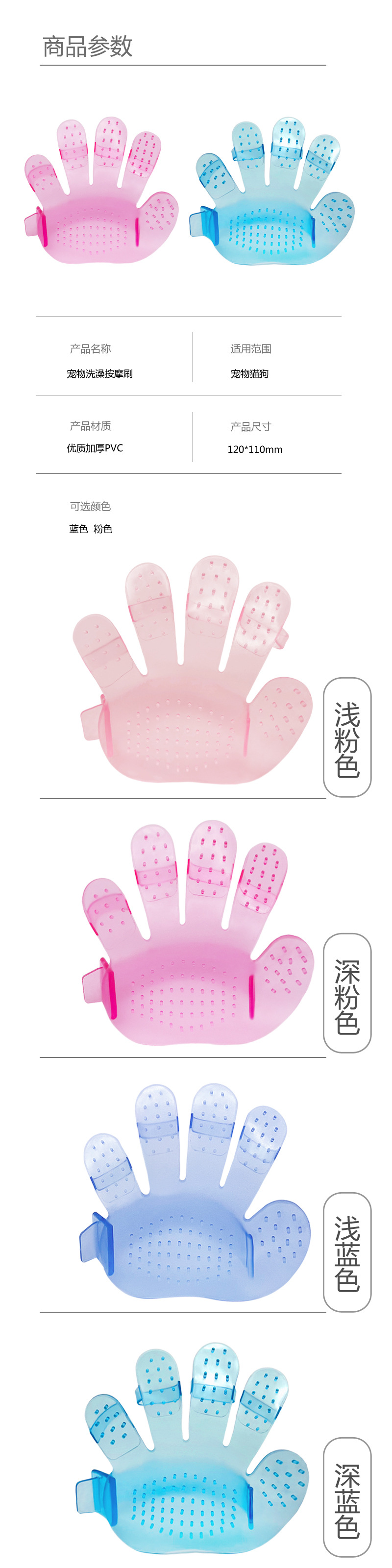 宠物用品狗狗猫咪洗澡刷子撸猫手套去浮毛猫狗清洁按摩洗澡五指刷