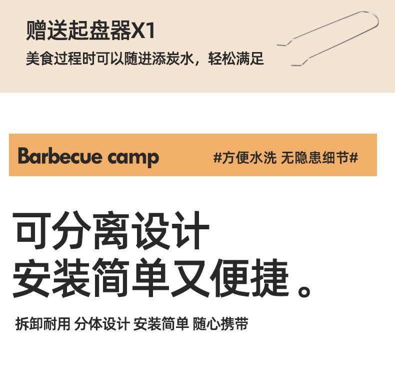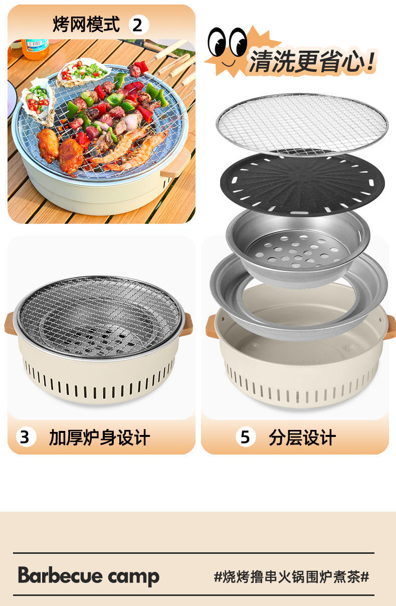 • 업그레이드된 다용도 오븐 [난로 옆 차 끓이기 + 바비큐] 전신 세척 가능 - 일반 대형 [표준 패키지 + 6종 세트 + 숯 1.5kg개] 싱크대 없음