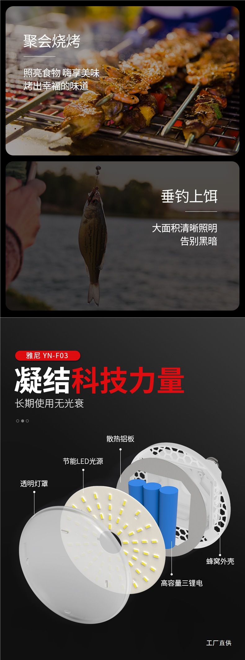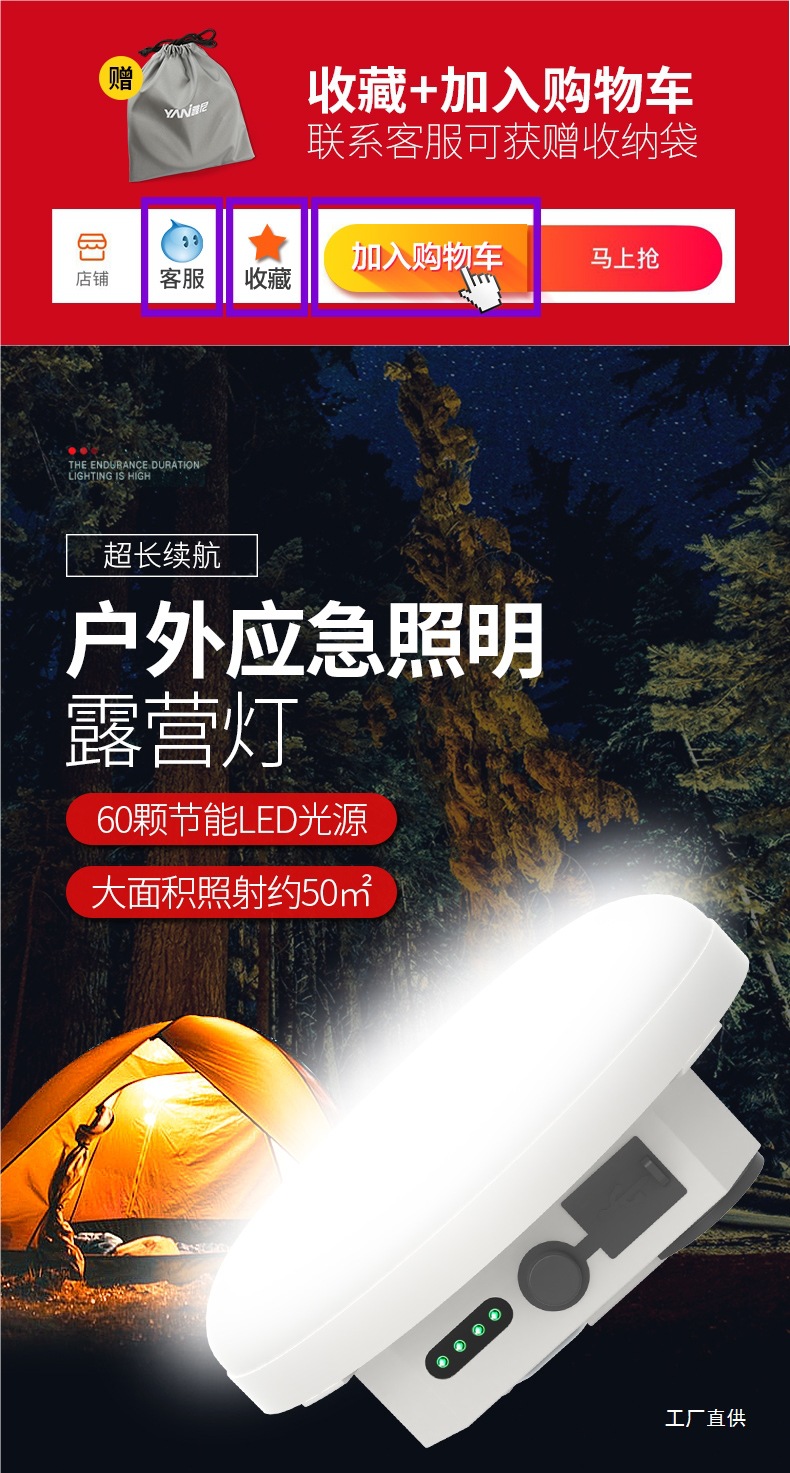Yanni 캠핑 램프 야외 조명 충전식 교수형 램프 긴 배터리 수명 비상 슈퍼 밝은 캠프 캠핑 램프 텐트 Tao Nong스토어 가기