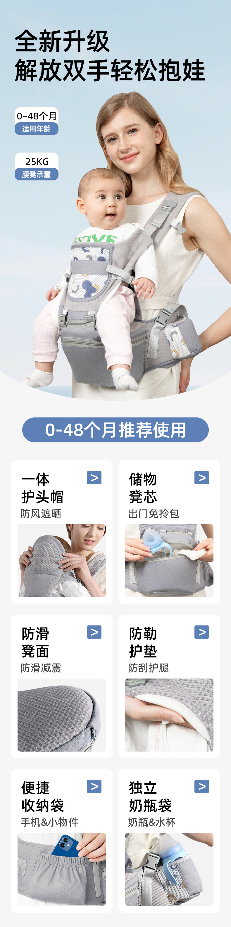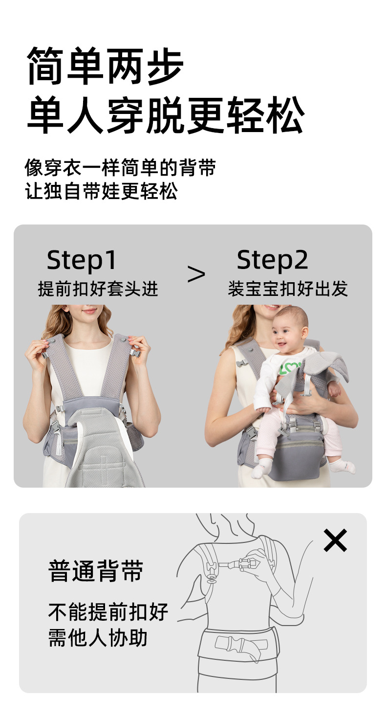아기의 스트랩 허리 의자 아기의 다기능 전면 및 후면 스트랩 봄과 여름 사계절 유니버설 2302 라인 스타일스토어 가기