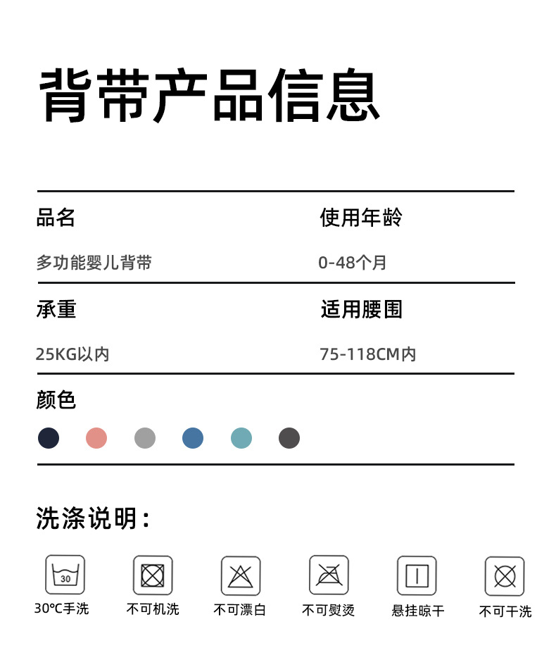 아기의 스트랩 허리 의자 아기의 다기능 전면 및 후면 스트랩 봄과 여름 사계절 유니버설 2302 라인 스타일