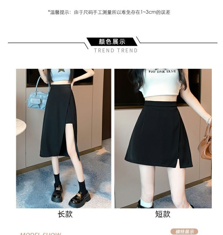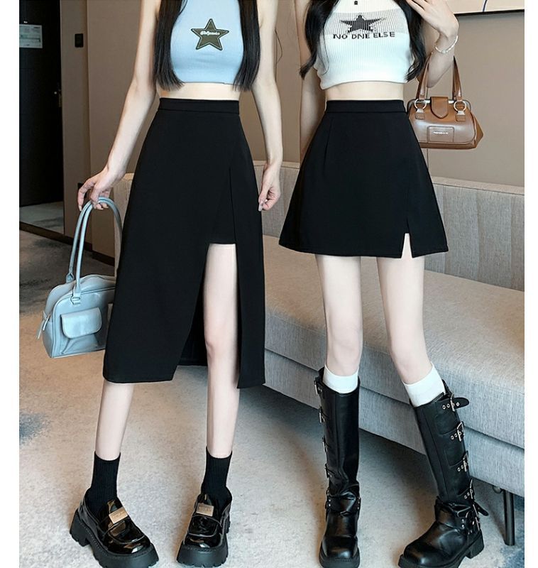 불규칙한 분할 검은 치마 여자 여름 긴 A 라인 스커트 2025 바지 높은 허리 스커트 동남아시아스토어 가기