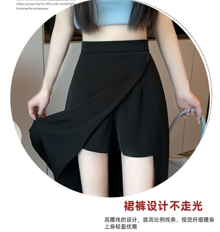 불규칙한 분할 검은 치마 여자 여름 긴 A 라인 스커트 2025 바지 높은 허리 스커트 동남아시아
