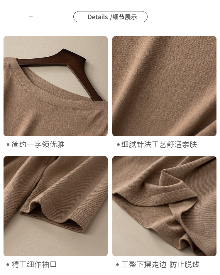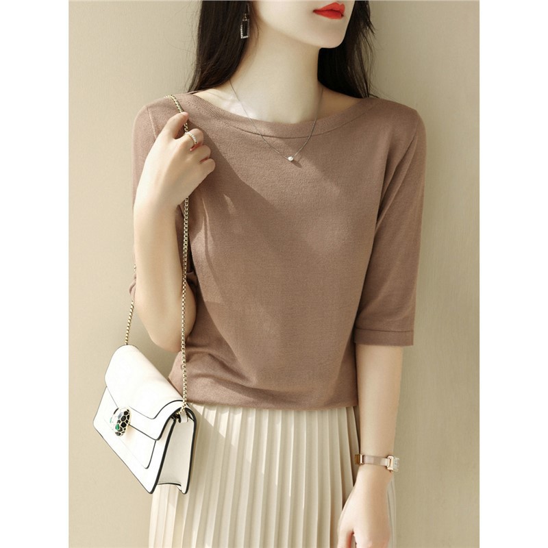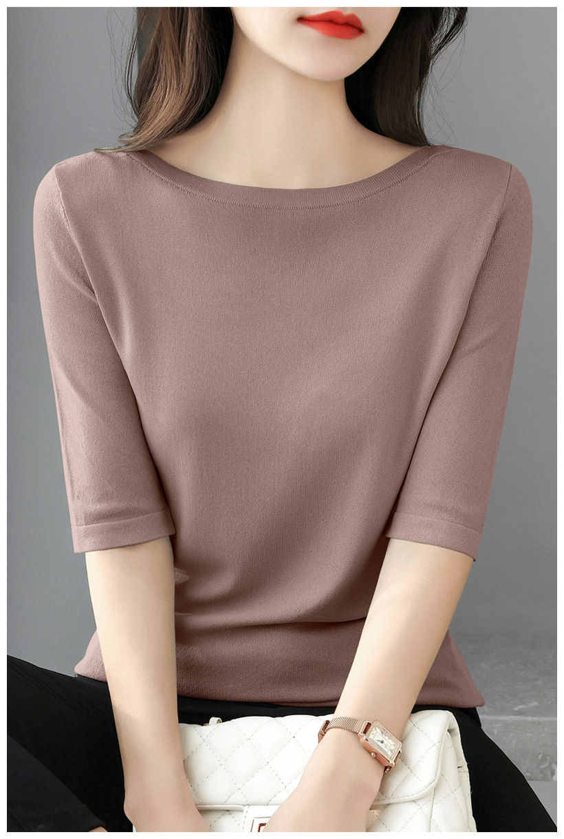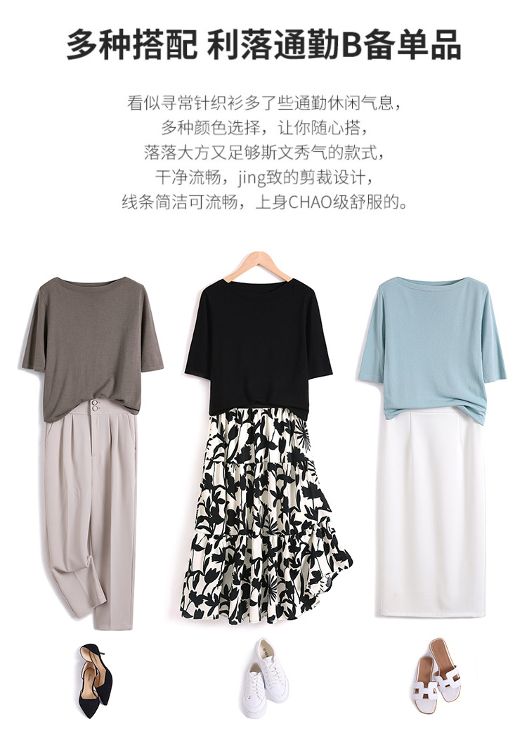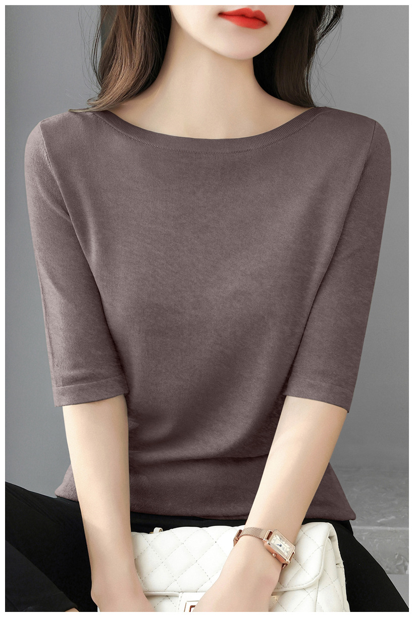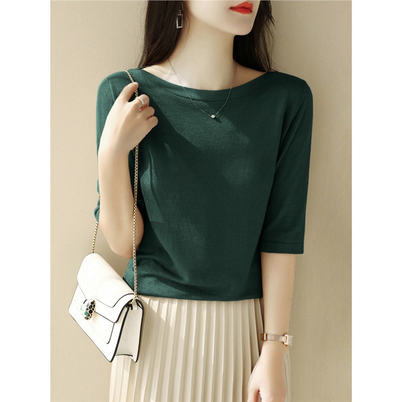 새로운 스타일의 원라인 칼라 루즈한 솔리드 컬러 소모사 스웨터 탑, 패셔너블하고 다재다능하며 우아한 중간 소매 플러스 사이즈 풀오버스토어 가기