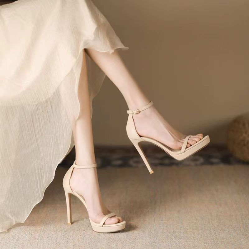 원라인 버클 샌들 2025 신상 여름 우아하고 섹시한 하이힐 오픈토 샌들 여성스럽고 키가 크고 심플함스토어 가기