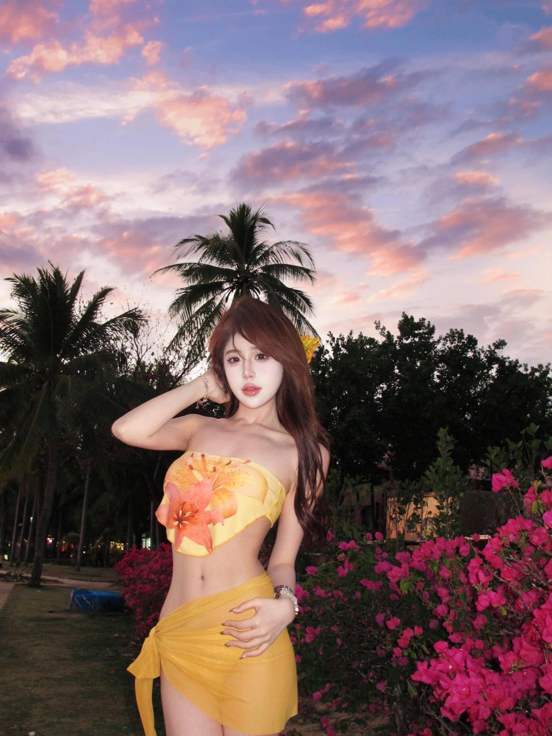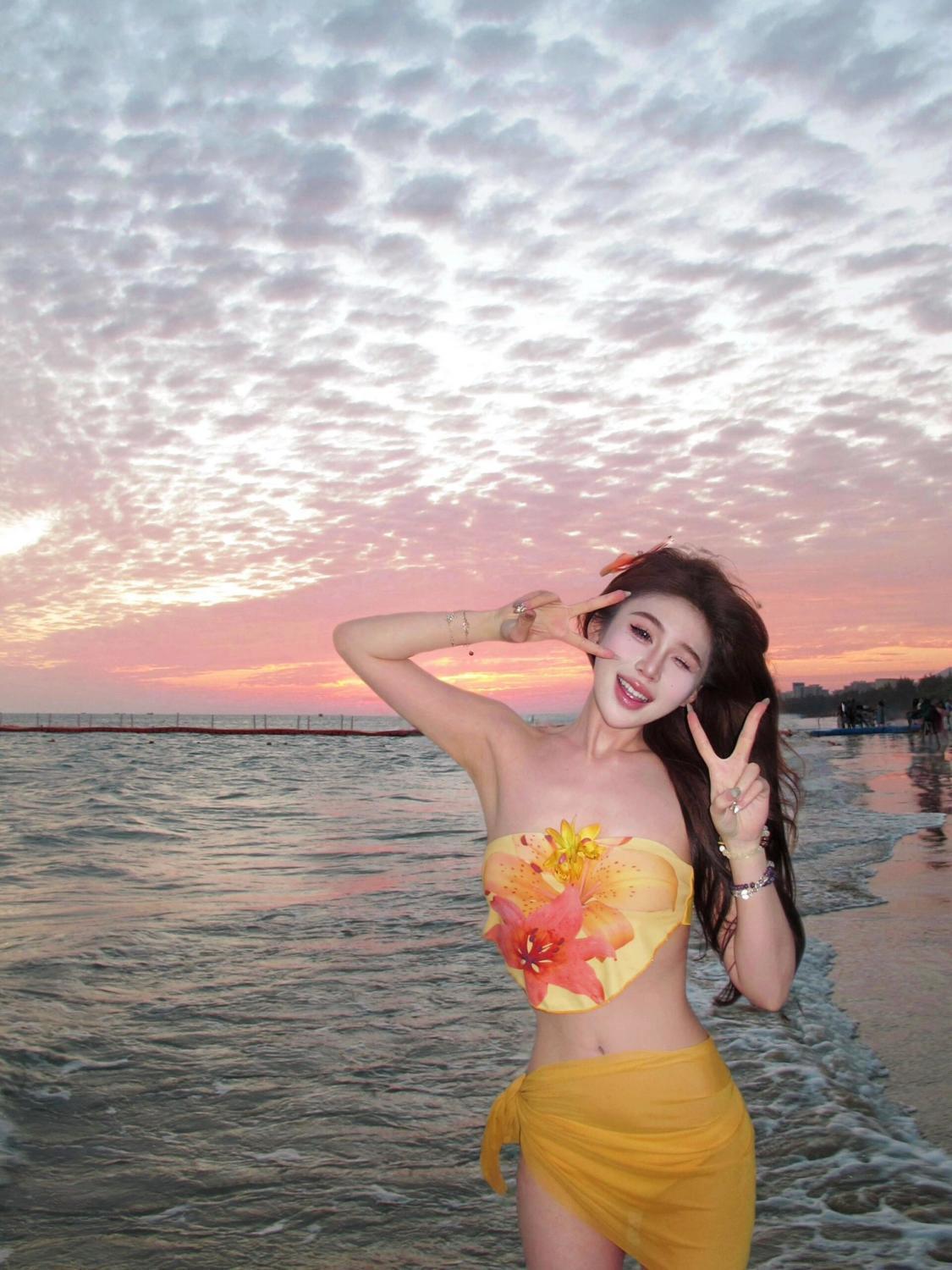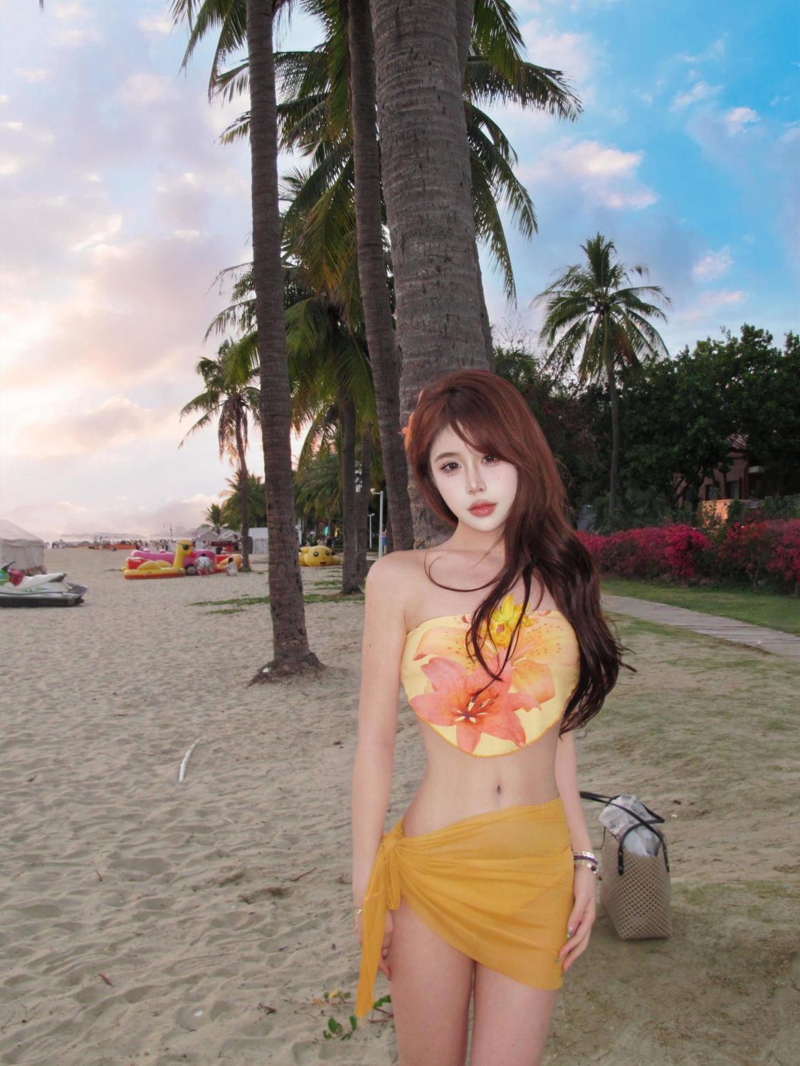 해변 도파민웨어 튜브탑 스플릿 비키니 3피스 앞치마 수영복 여성 섹시 핫걸 비치 여름스토어 가기