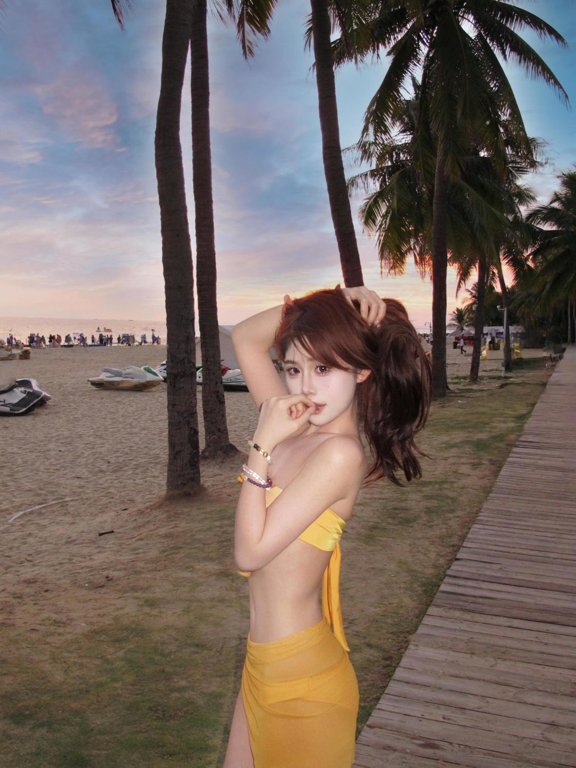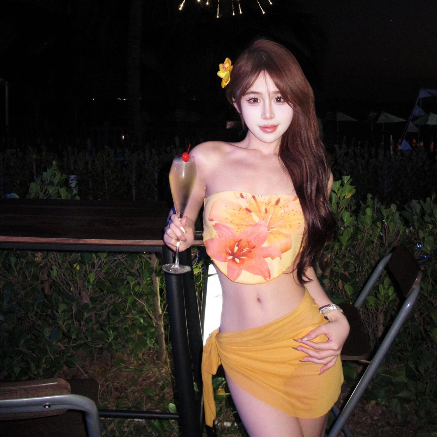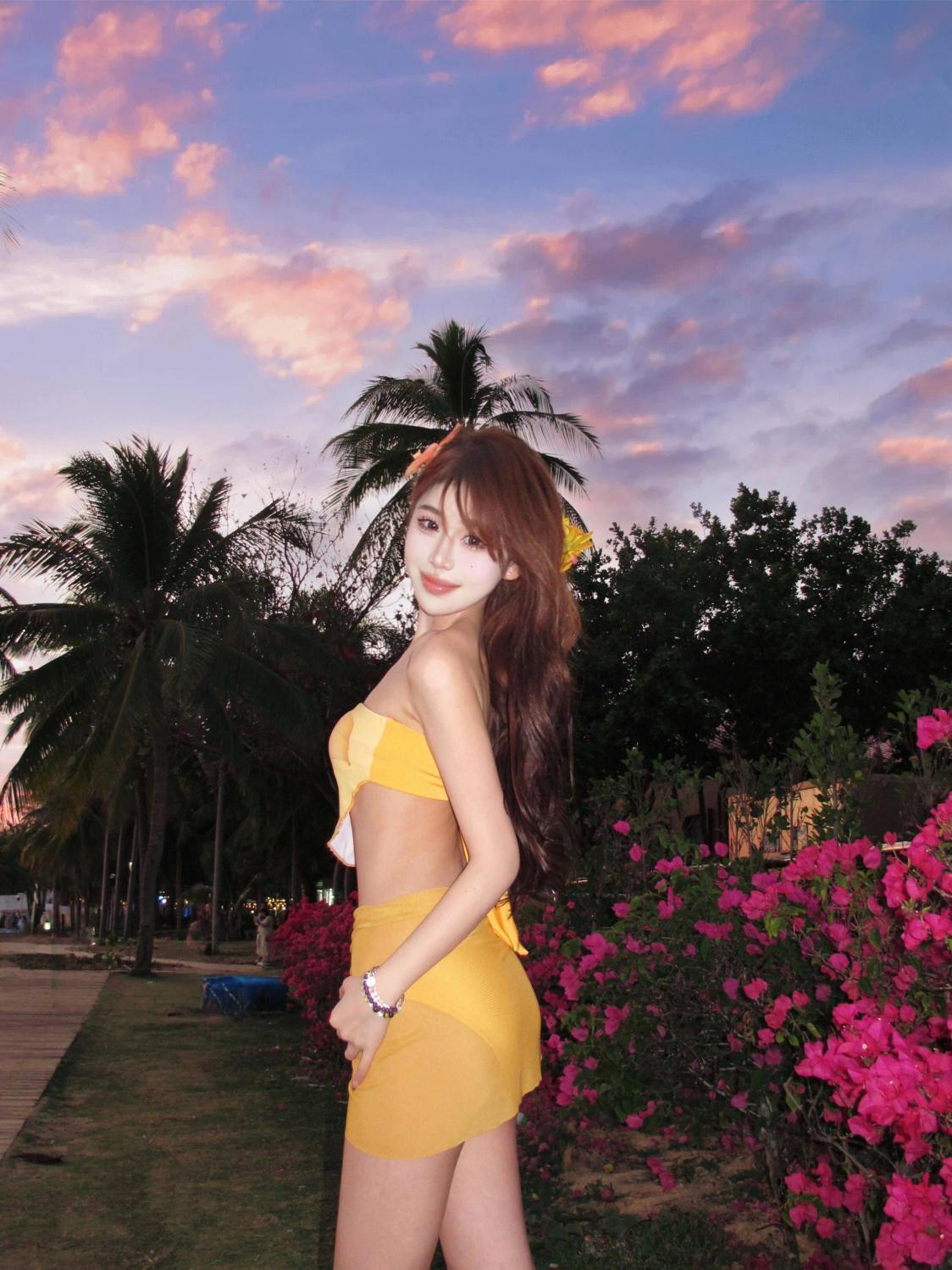 해변 도파민웨어 튜브탑 스플릿 비키니 3피스 앞치마 수영복 여성 섹시 핫걸 비치 여름스토어 가기