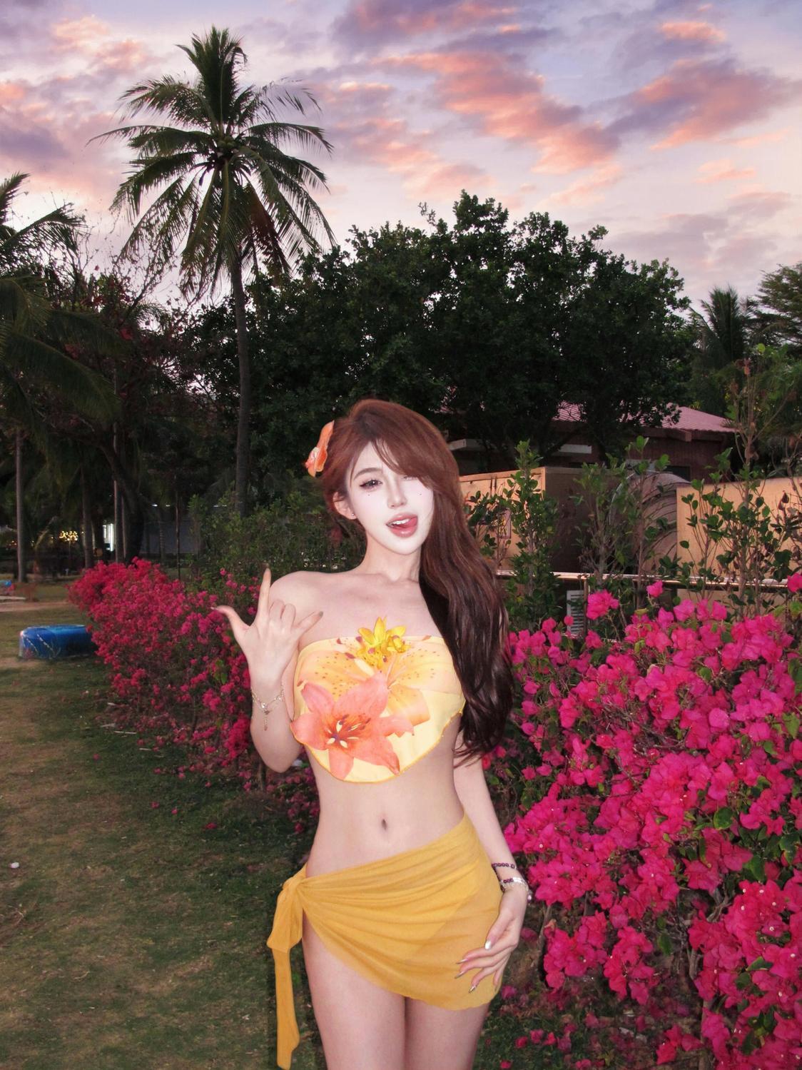 해변 도파민웨어 튜브탑 스플릿 비키니 3피스 앞치마 수영복 여성 섹시 핫걸 비치 여름