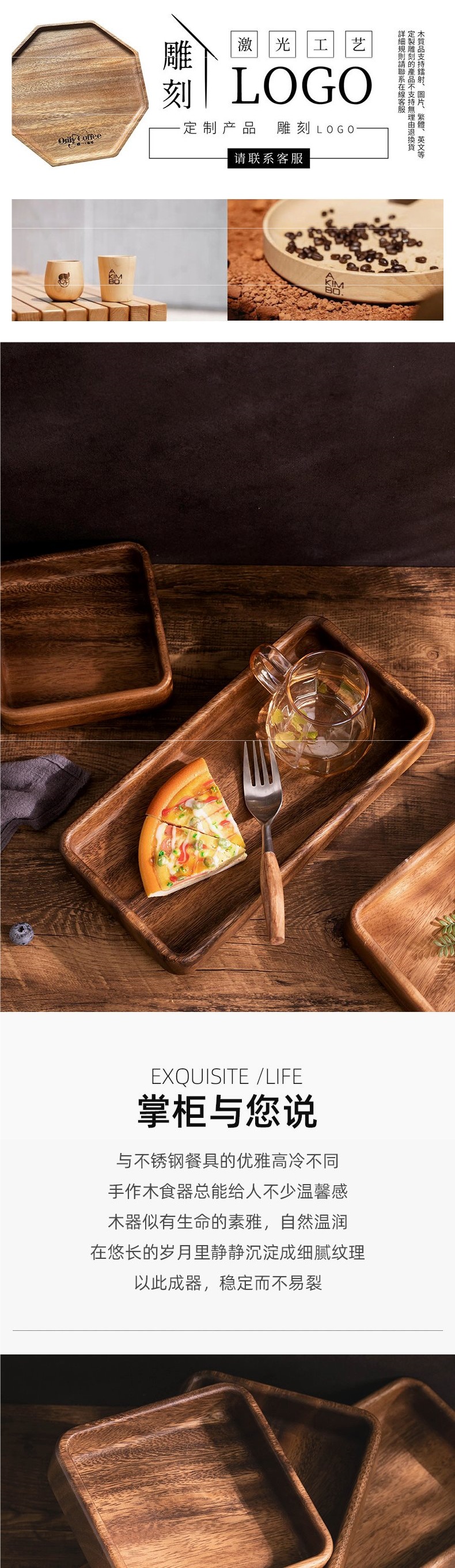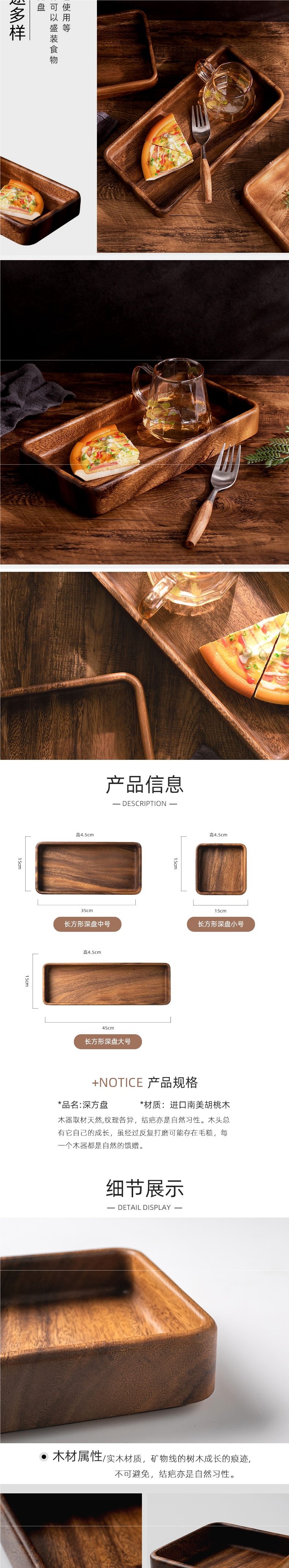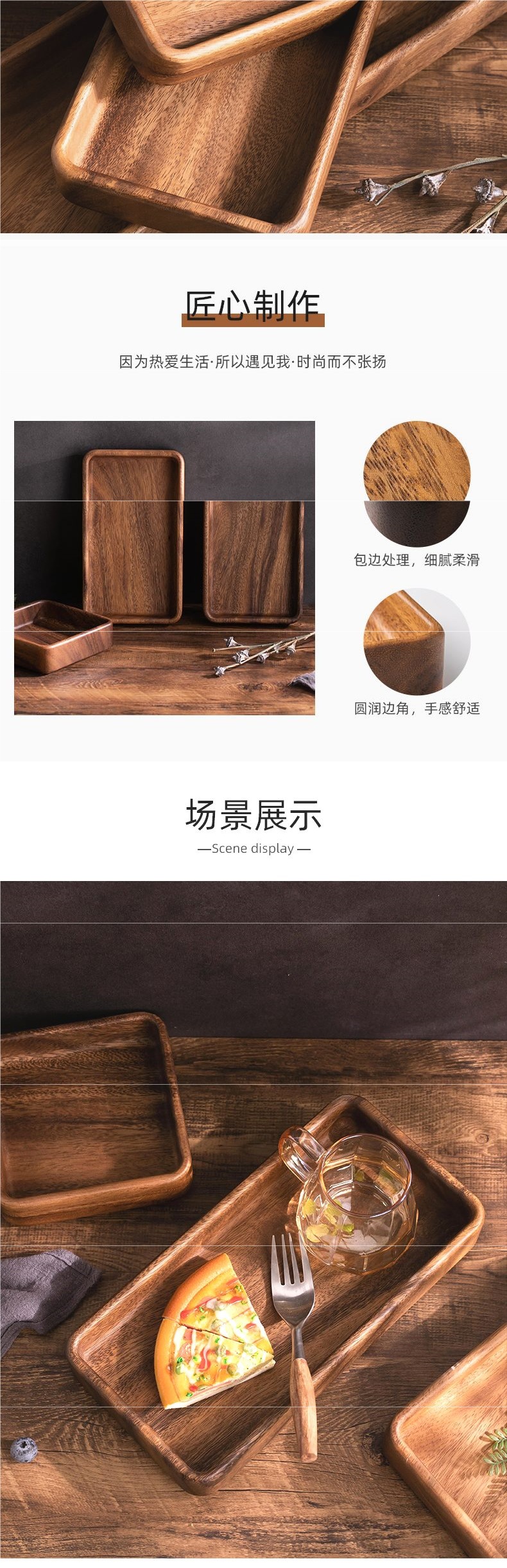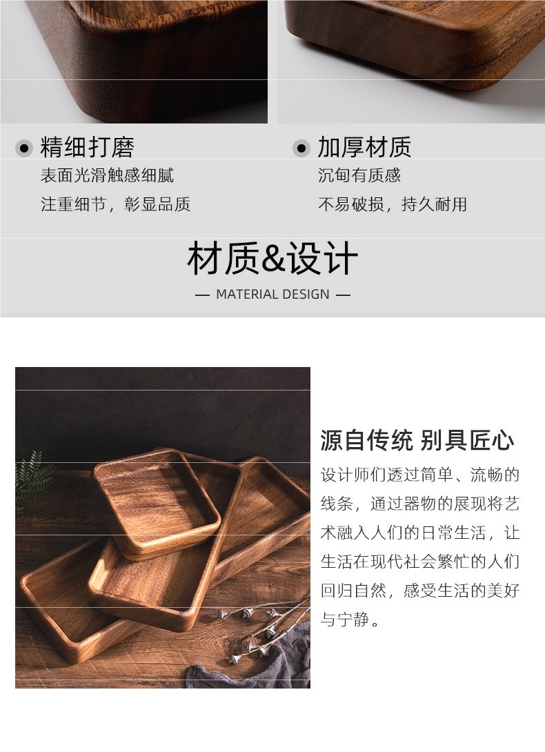 호두나무 접시 중국식 단단한 나무 깊은 홈 트레이 스낵 페이스트리 접시 사각형 둥근 가정용 중첩 가능한 개인 티 트레이