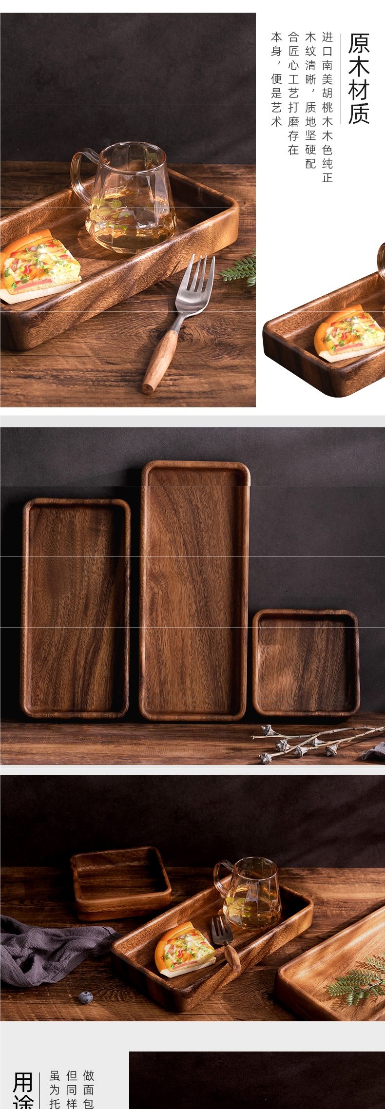 호두나무 접시 중국식 단단한 나무 깊은 홈 트레이 스낵 페이스트리 접시 사각형 둥근 가정용 중첩 가능한 개인 티 트레이스토어 가기