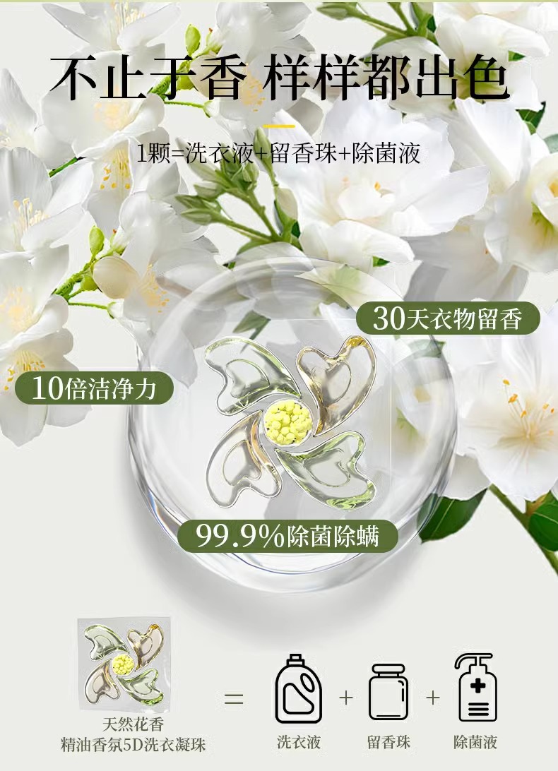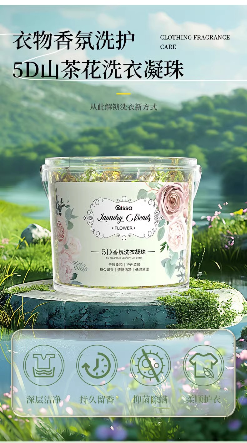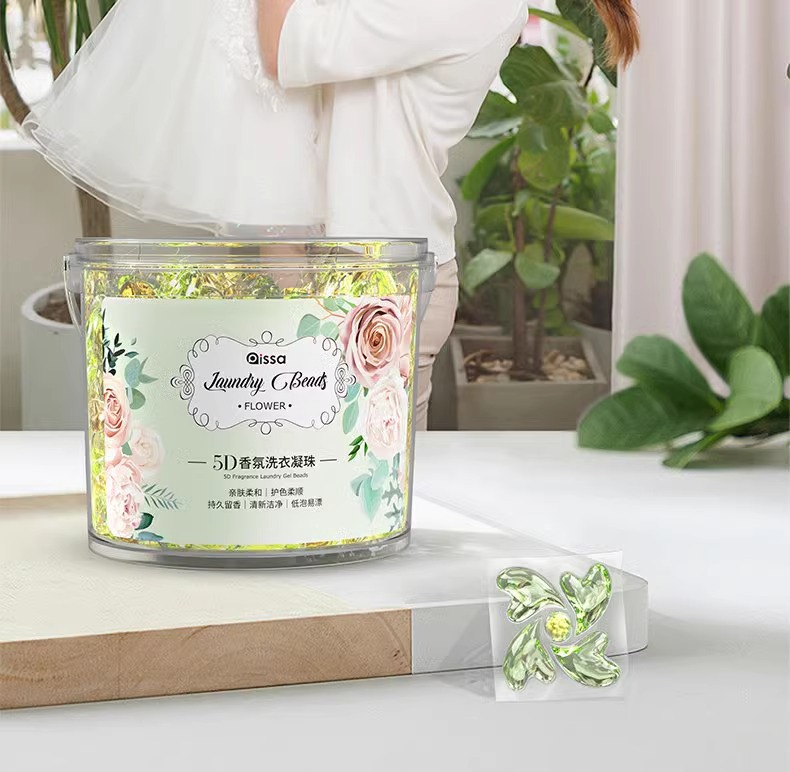 카멜리아 세탁 비즈 버킷 5-in-1 오래 지속되는 향기 부드러운 세탁 볼 강력한 오염 제거 농축 세탁 세제