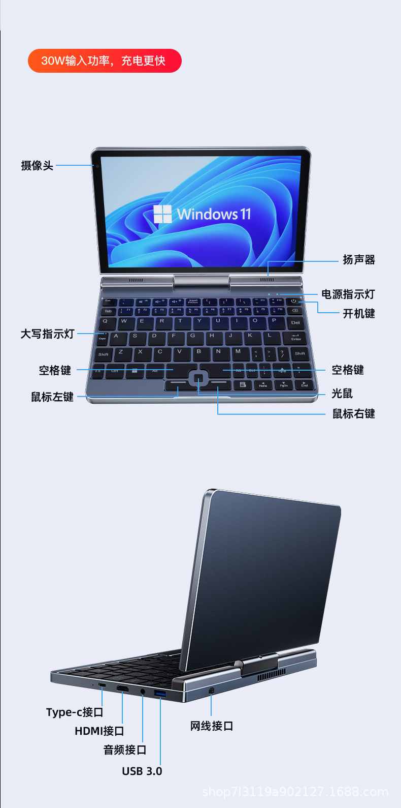 핸드 헬드 노트북 8inch 미니 휴대용 포켓 접이식 터치 스크린 프로그래밍 사무실 학습 디자인 컴퓨터스토어 가기