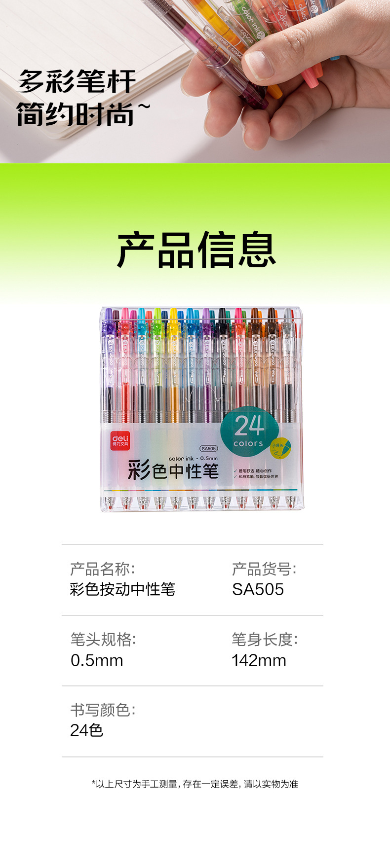 델리 24 컬러 프레스 젤 펜 멀티 컬러 마킹 펜 학생 메모 손 계정 마킹 펜스토어 가기