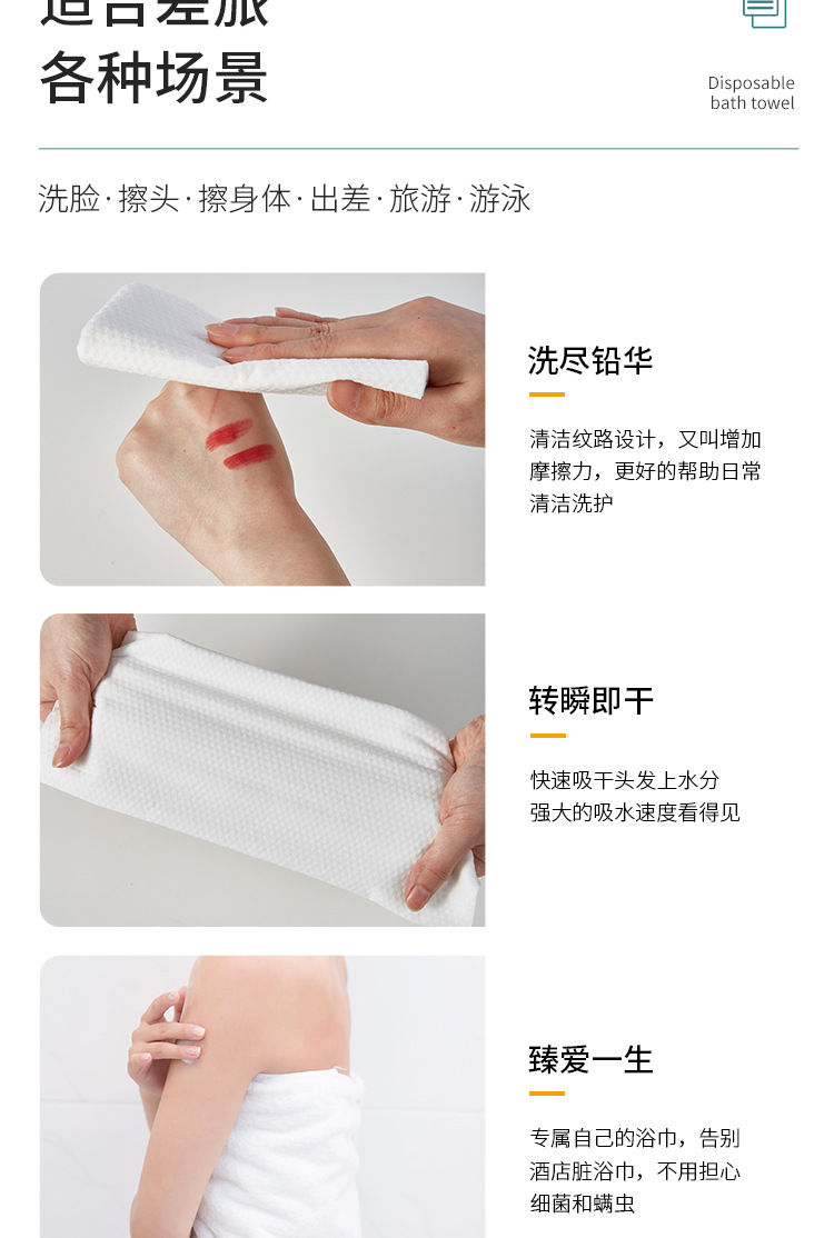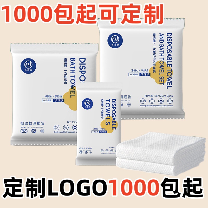 로고 일회용 목욕 수건 수건 두꺼운 독립 포장 조합 세트 도매 호텔 이름스토어 가기