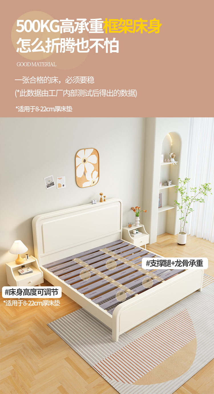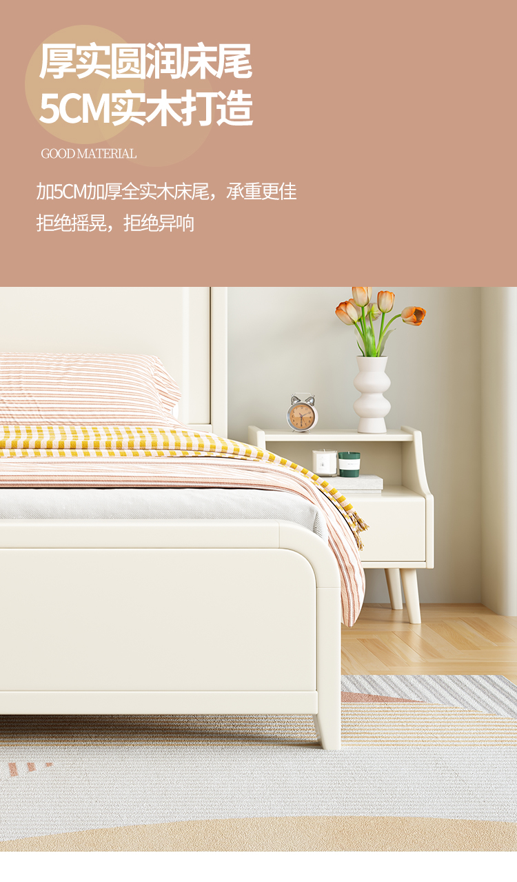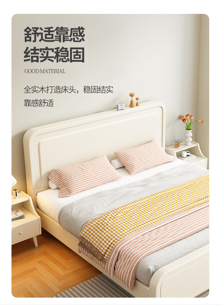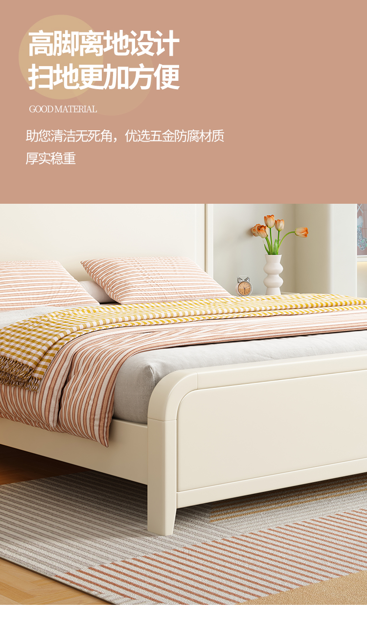 이탈리아 크림 스타일 단단한 나무 침대 1.5 m 싱글 1.8 m 더블 침실 빛 고급 웨딩 침대 마스터 침실 두 번째 침실