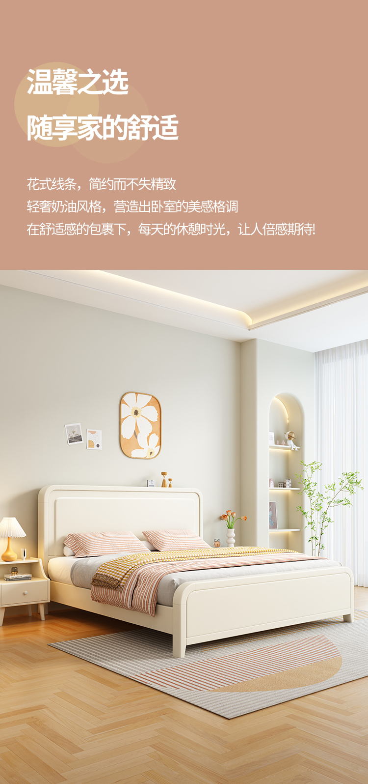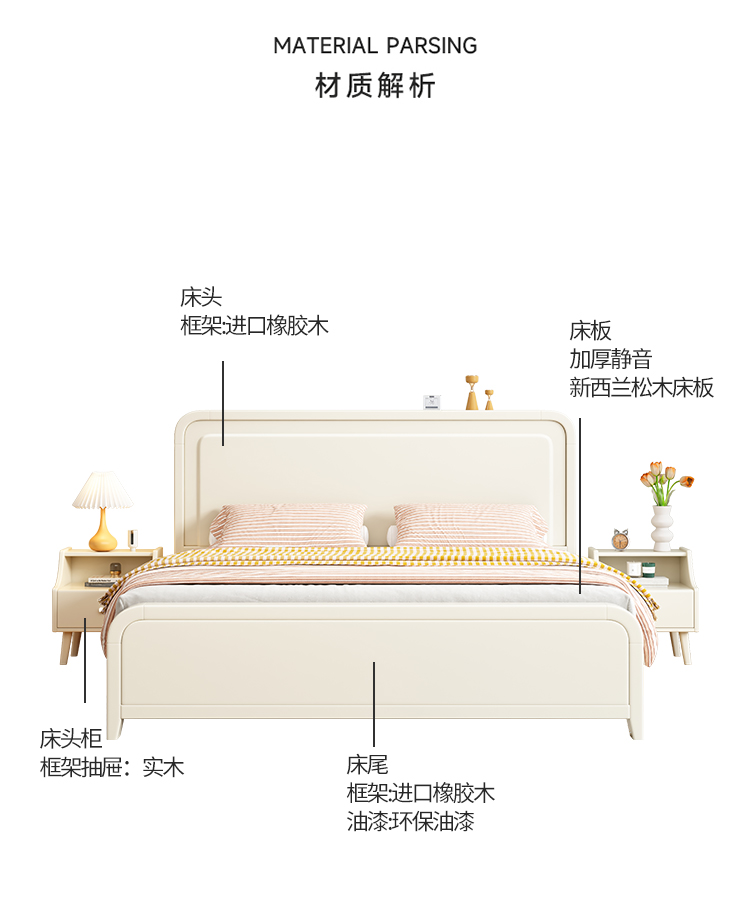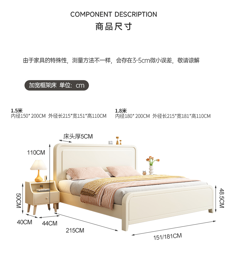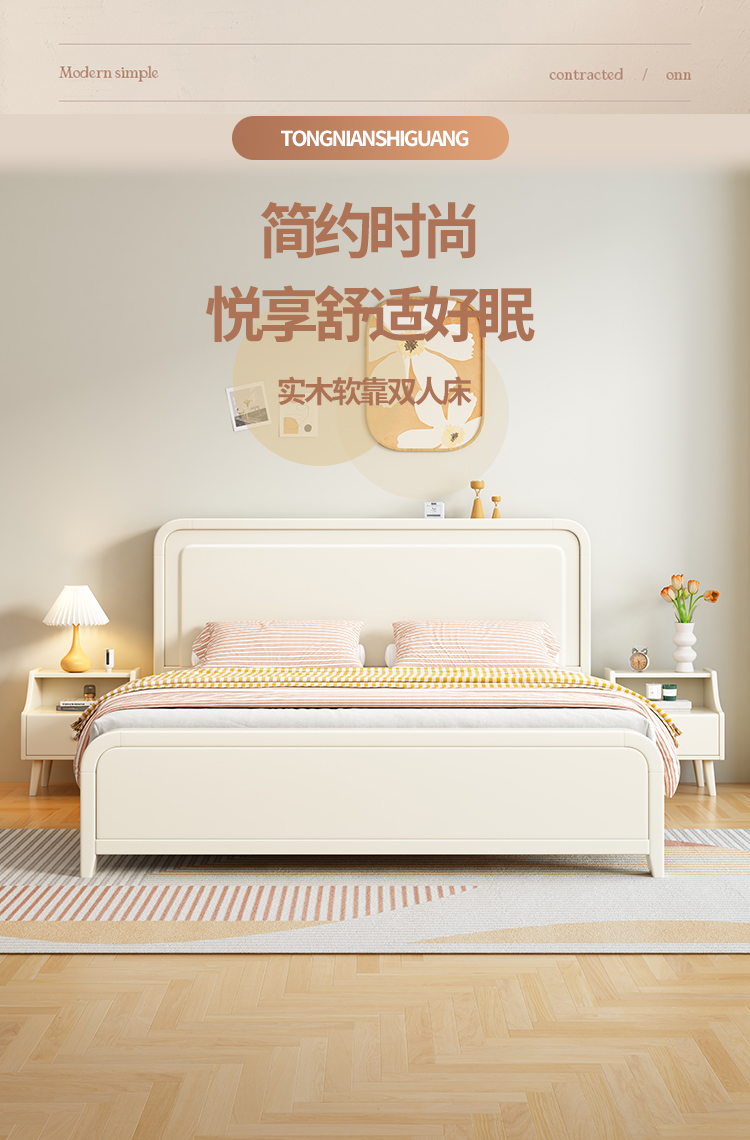 이탈리아 크림 스타일 단단한 나무 침대 1.5 m 싱글 1.8 m 더블 침실 빛 고급 웨딩 침대 마스터 침실 두 번째 침실