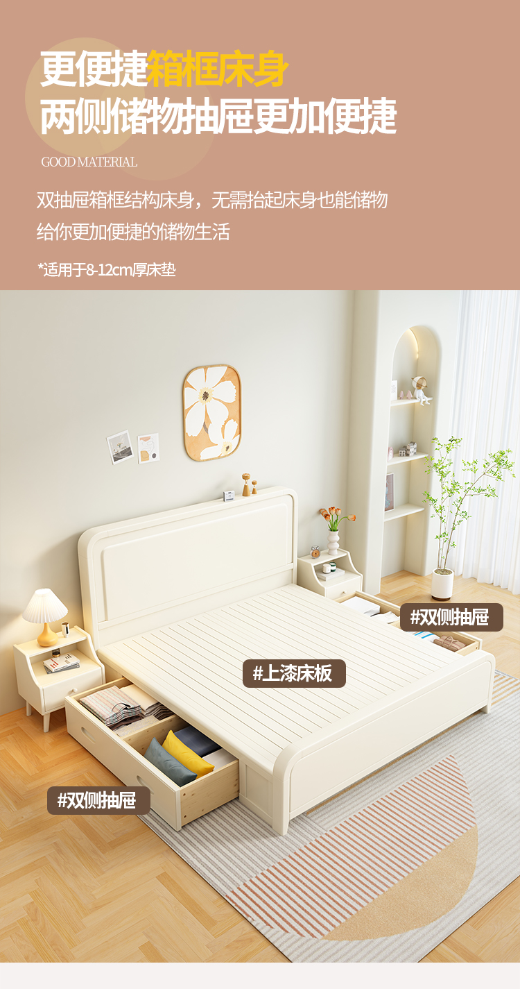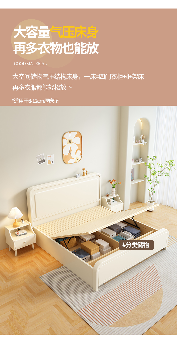 이탈리아 크림 스타일 단단한 나무 침대 1.5 m 싱글 1.8 m 더블 침실 빛 고급 웨딩 침대 마스터 침실 두 번째 침실스토어 가기