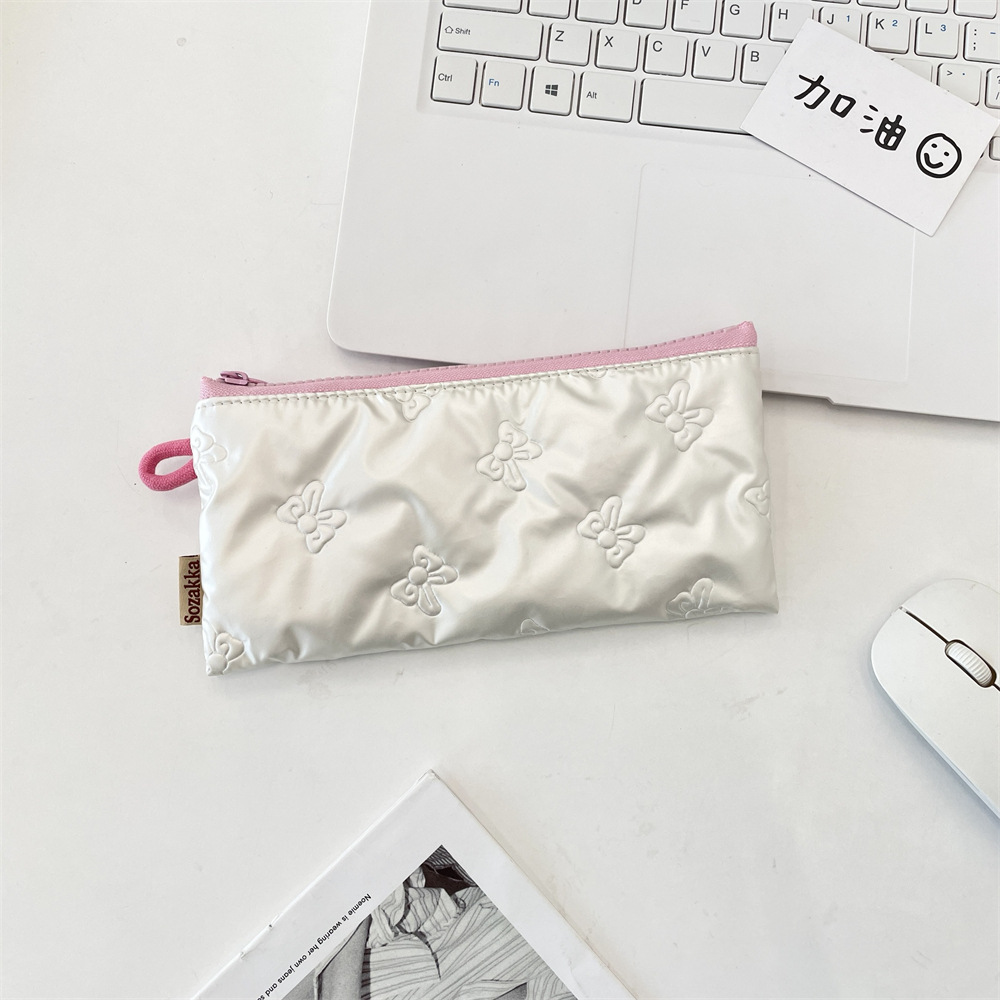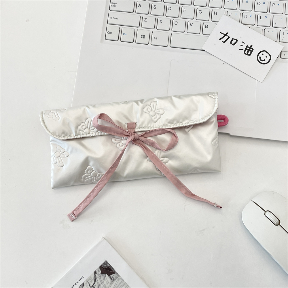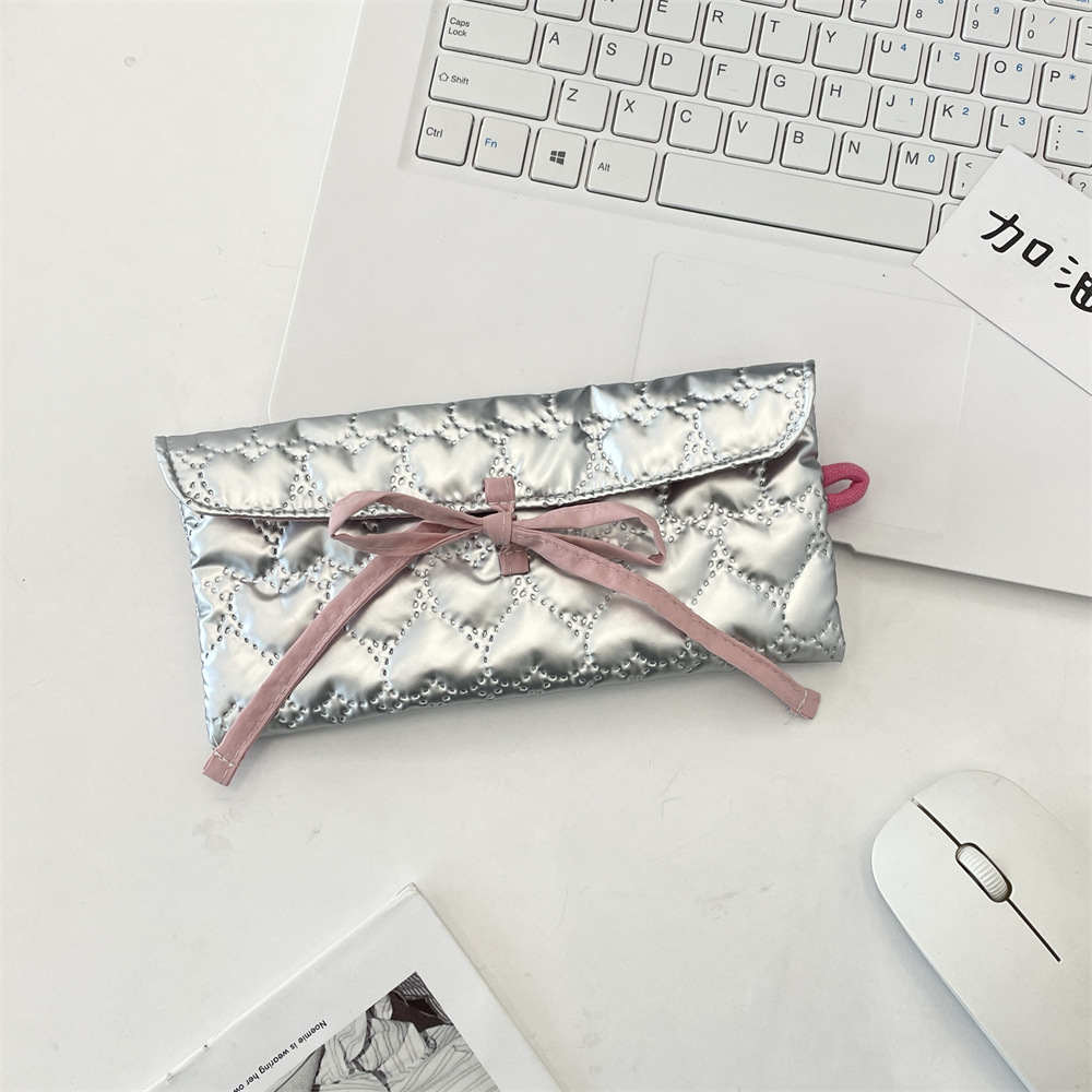 5462 퀼트 보우 플립 펜 가방 동전 지갑 여성용 휴대용 보관 가방 다기능 학생 문구 상자스토어 가기