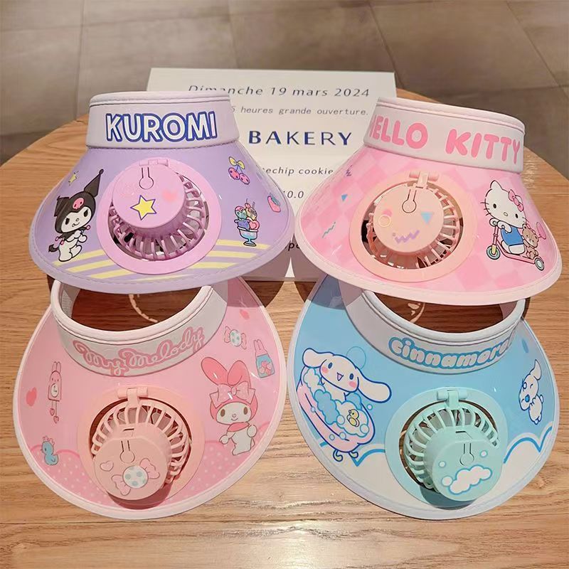 팬 선 스크린 모자 소년과 소녀 빈 탑 모자 여름 산리오 어린 소녀 햇살