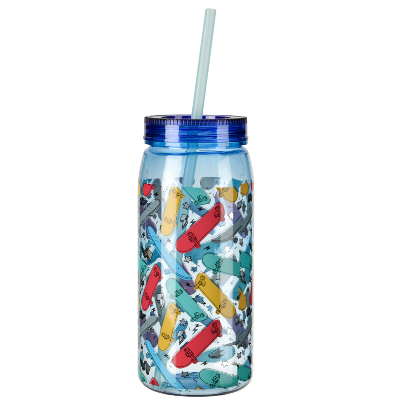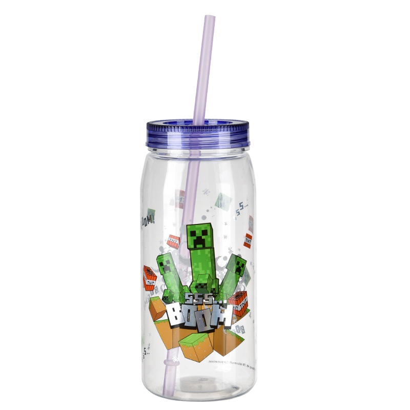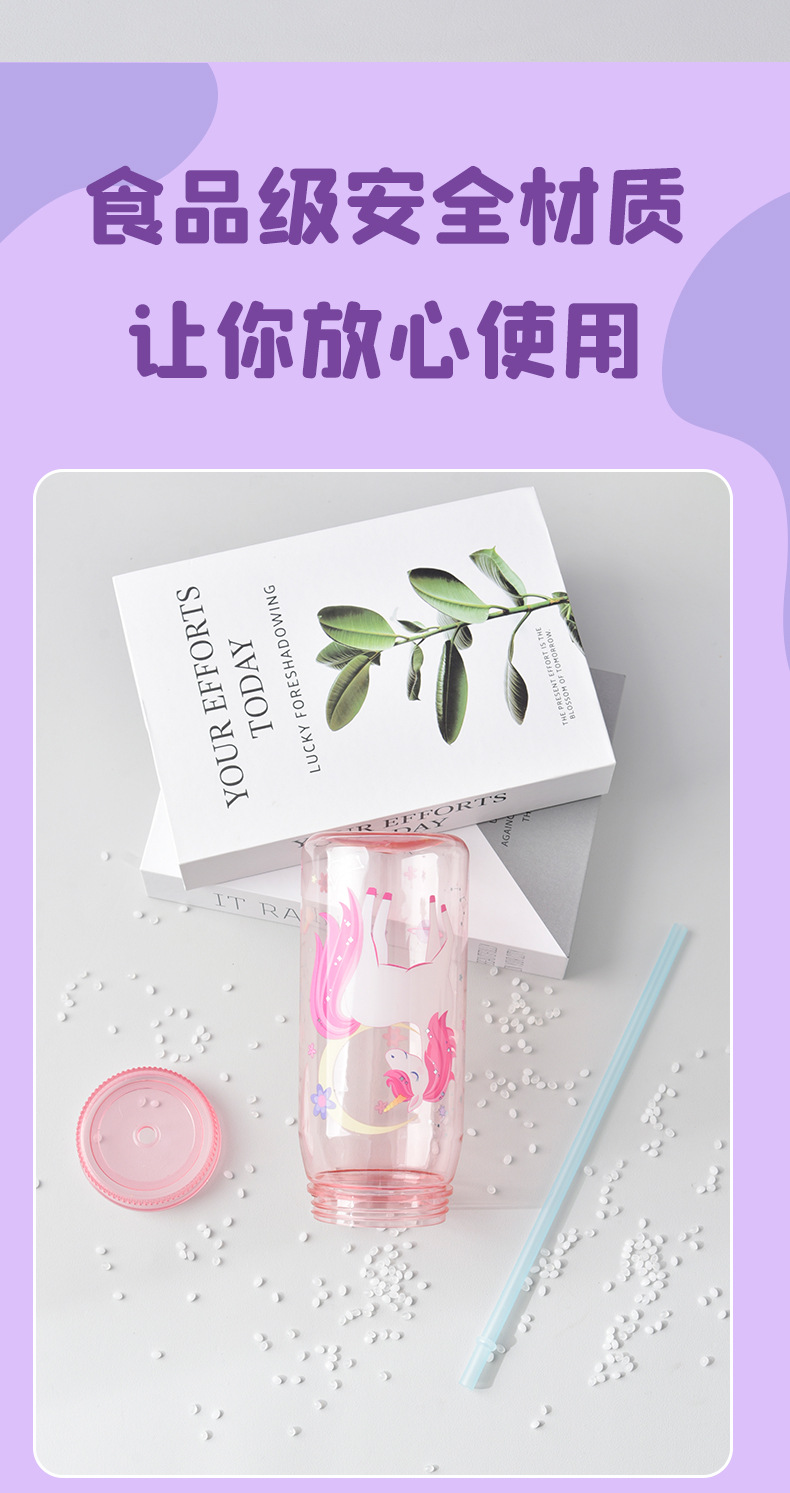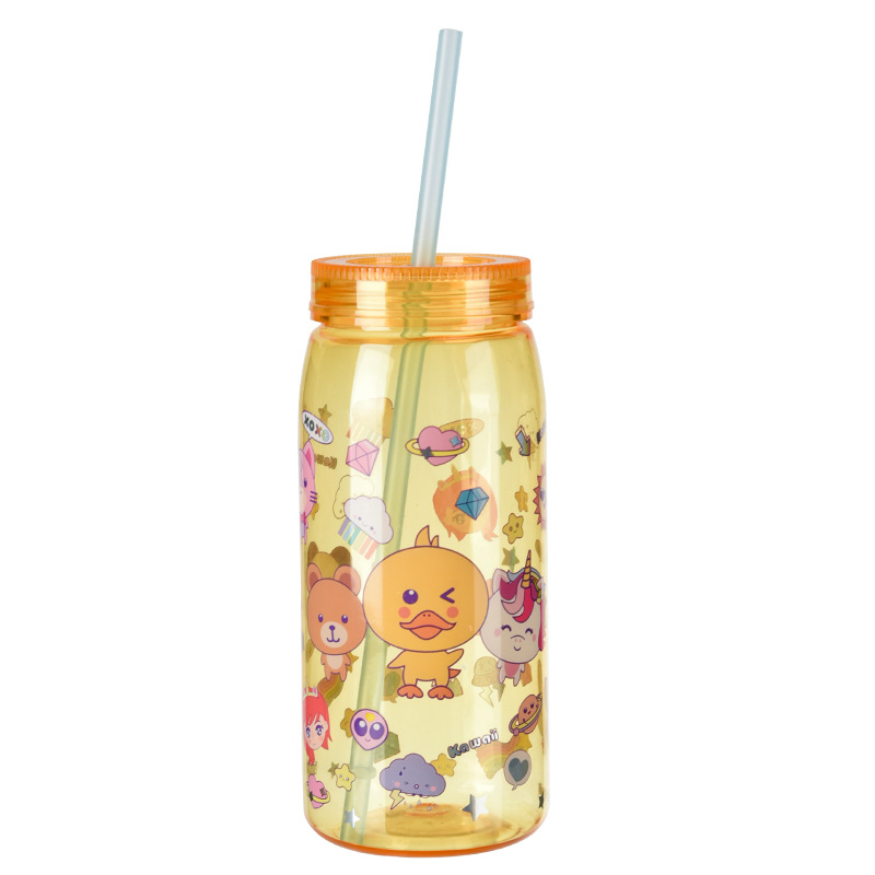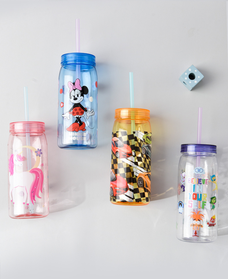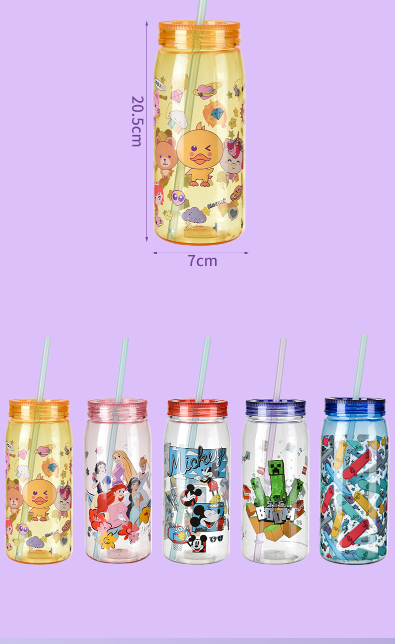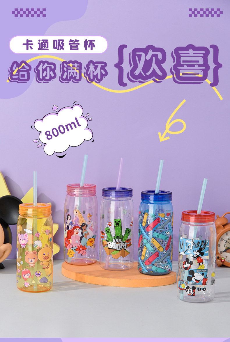 크리 에이 티브 학생 만화 PP + PET 워터 컵 어린이 밀짚 컵 학교 마시는 컵 학생 휴대용 주전자 누출 방지 800ML