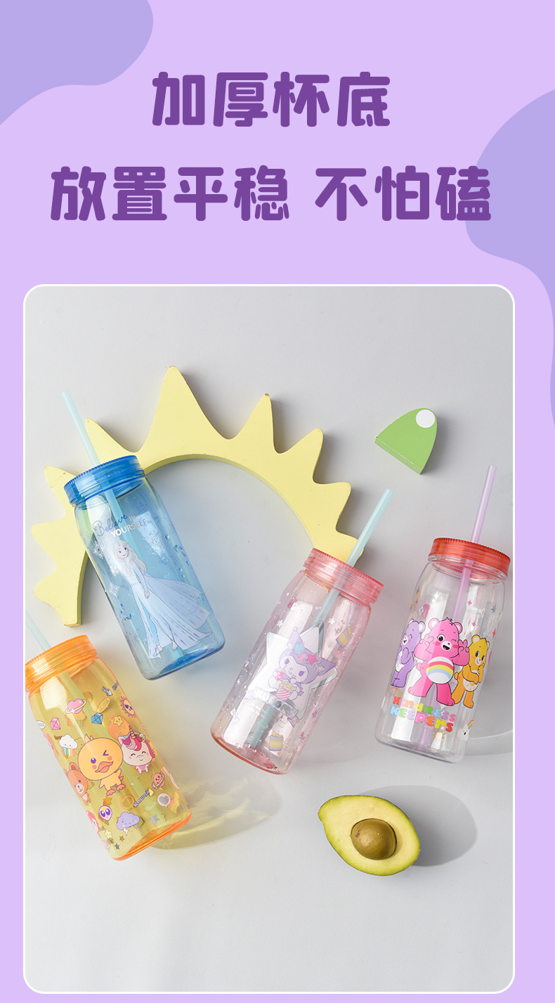 크리 에이 티브 학생 만화 PP + PET 워터 컵 어린이 밀짚 컵 학교 마시는 컵 학생 휴대용 주전자 누출 방지 800ML스토어 가기