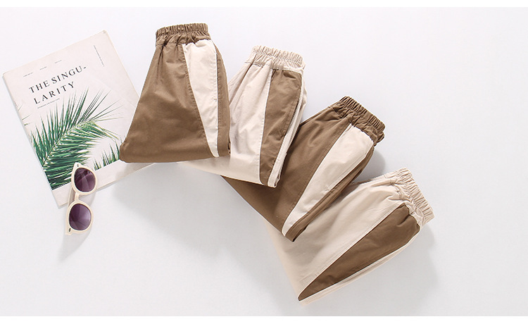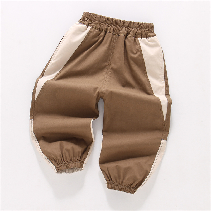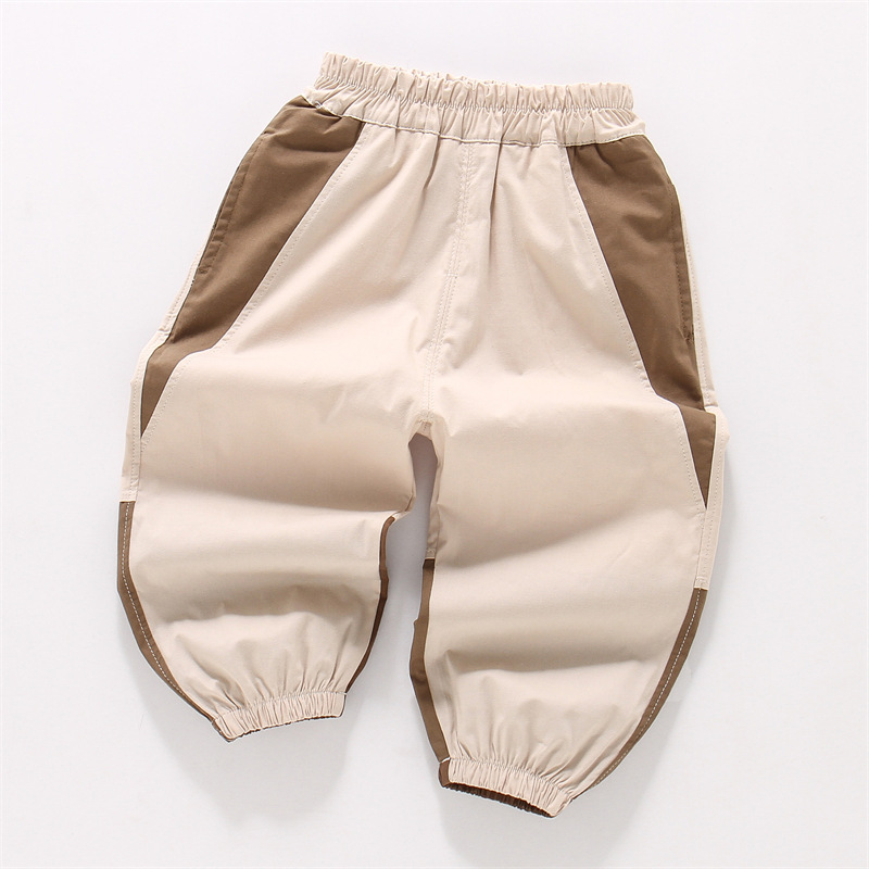 여름 신작 남아용 순면 캐주얼 팬츠, 패셔너블하고 트렌디한 대비색 면바지, 중소형 아동용 패셔너블한 긴바지