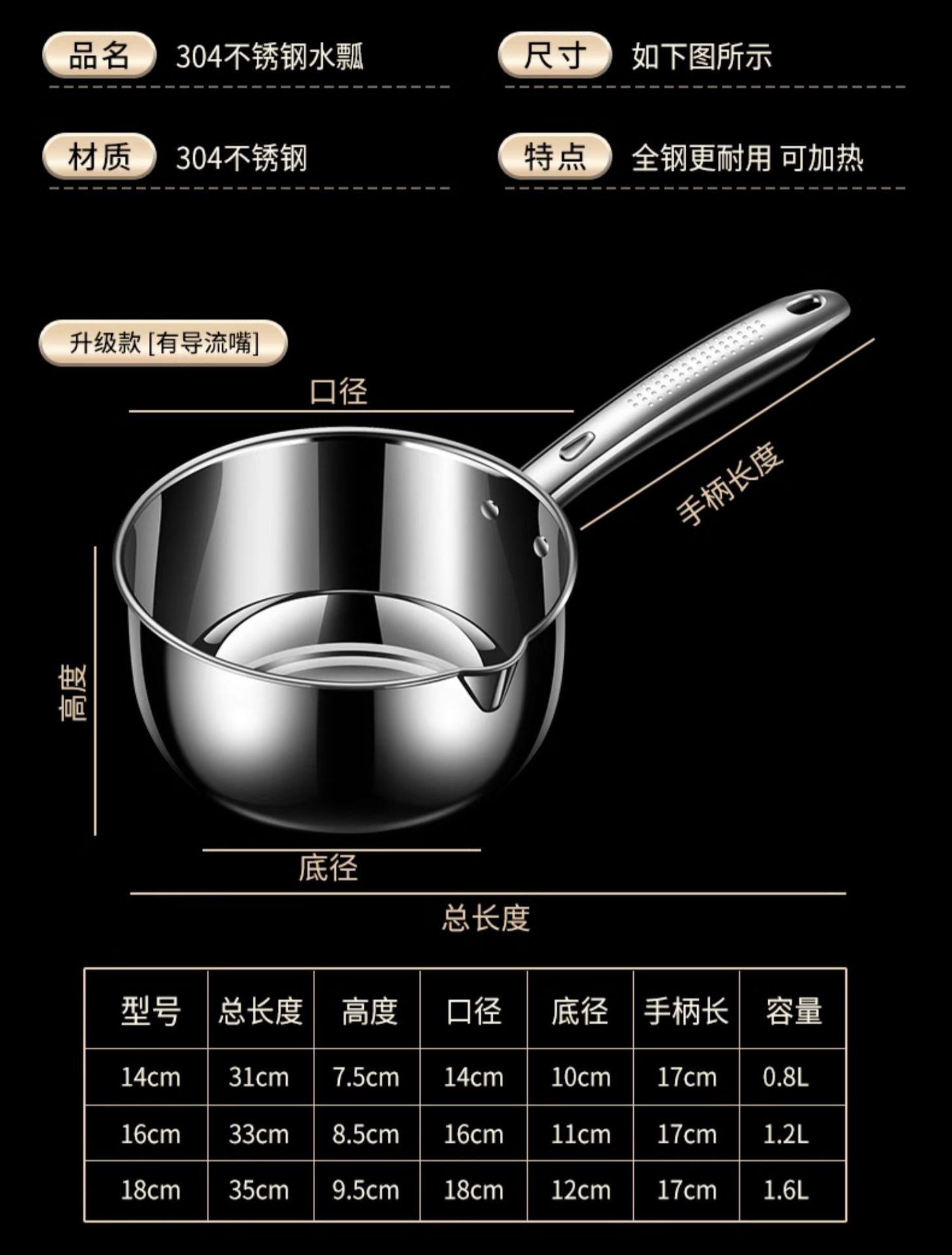 새로운 스테인레스 스틸 물 국자 두꺼운 대형 물 국자 가정용 주방 나무 손잡이 물 물기 및 표백스토어 가기