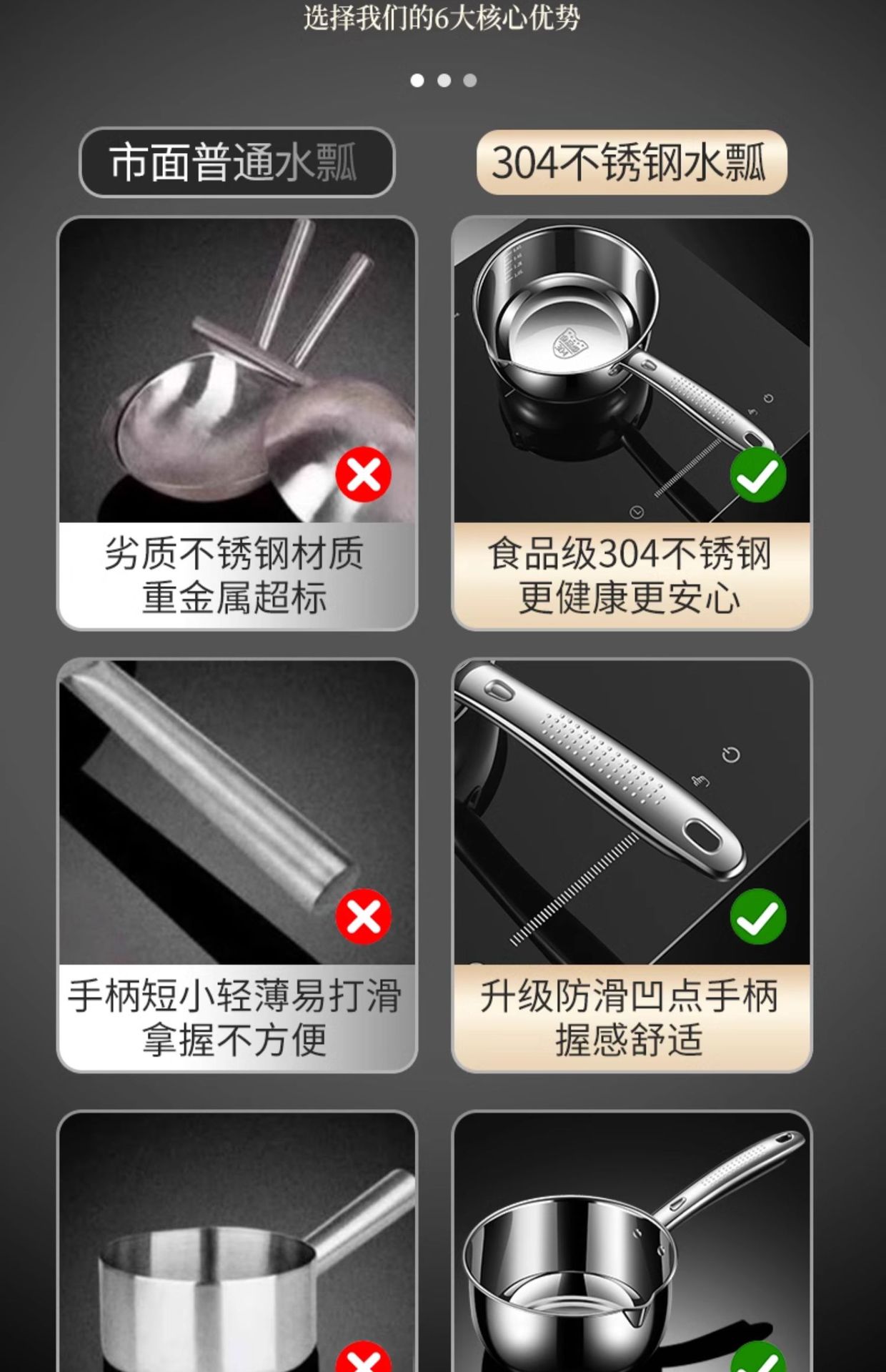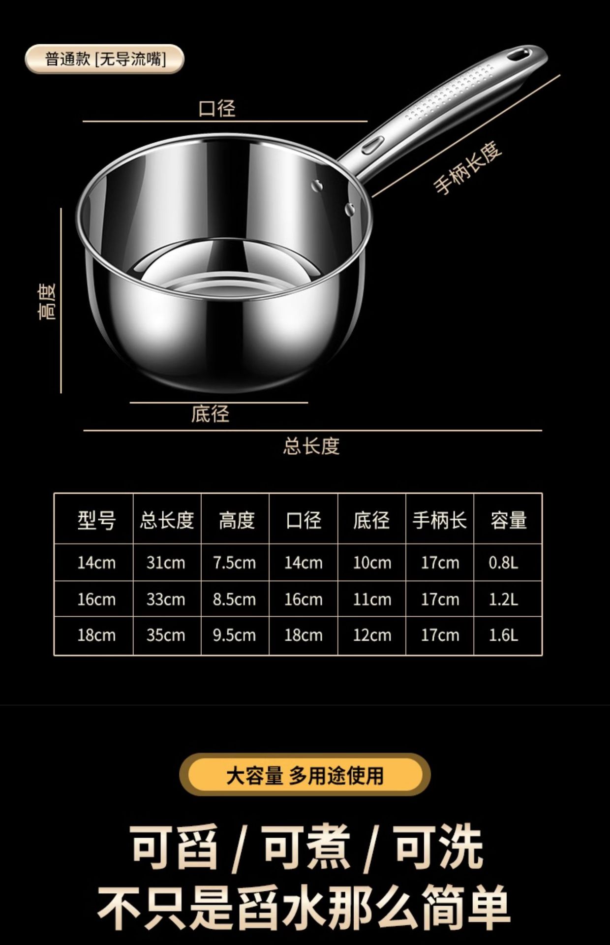 새로운 스테인레스 스틸 물 국자 두꺼운 대형 물 국자 가정용 주방 나무 손잡이 물 물기 및 표백