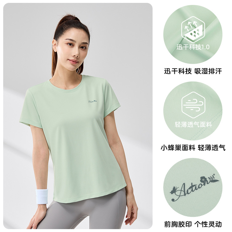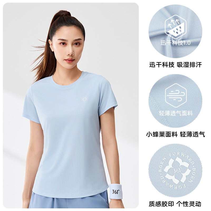 361 스포츠 티셔츠 여자 2025 여름 새로운 경량 통기성 빠른 건조 최고 여성 요가 피트니스 짧은 소매