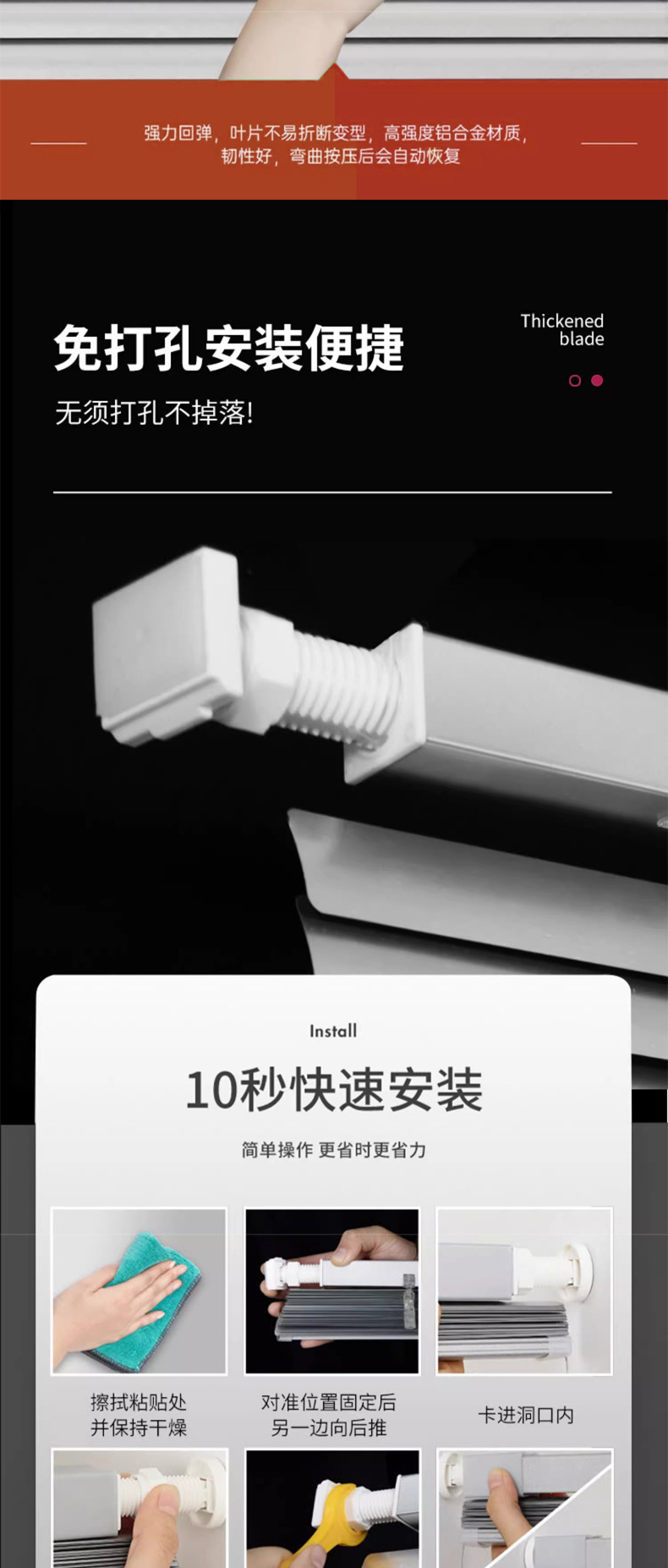 2025 새로운 셔터 커튼 비 천공 설치 사무실 차양 차양 화장실 롤업 롤러 셔터