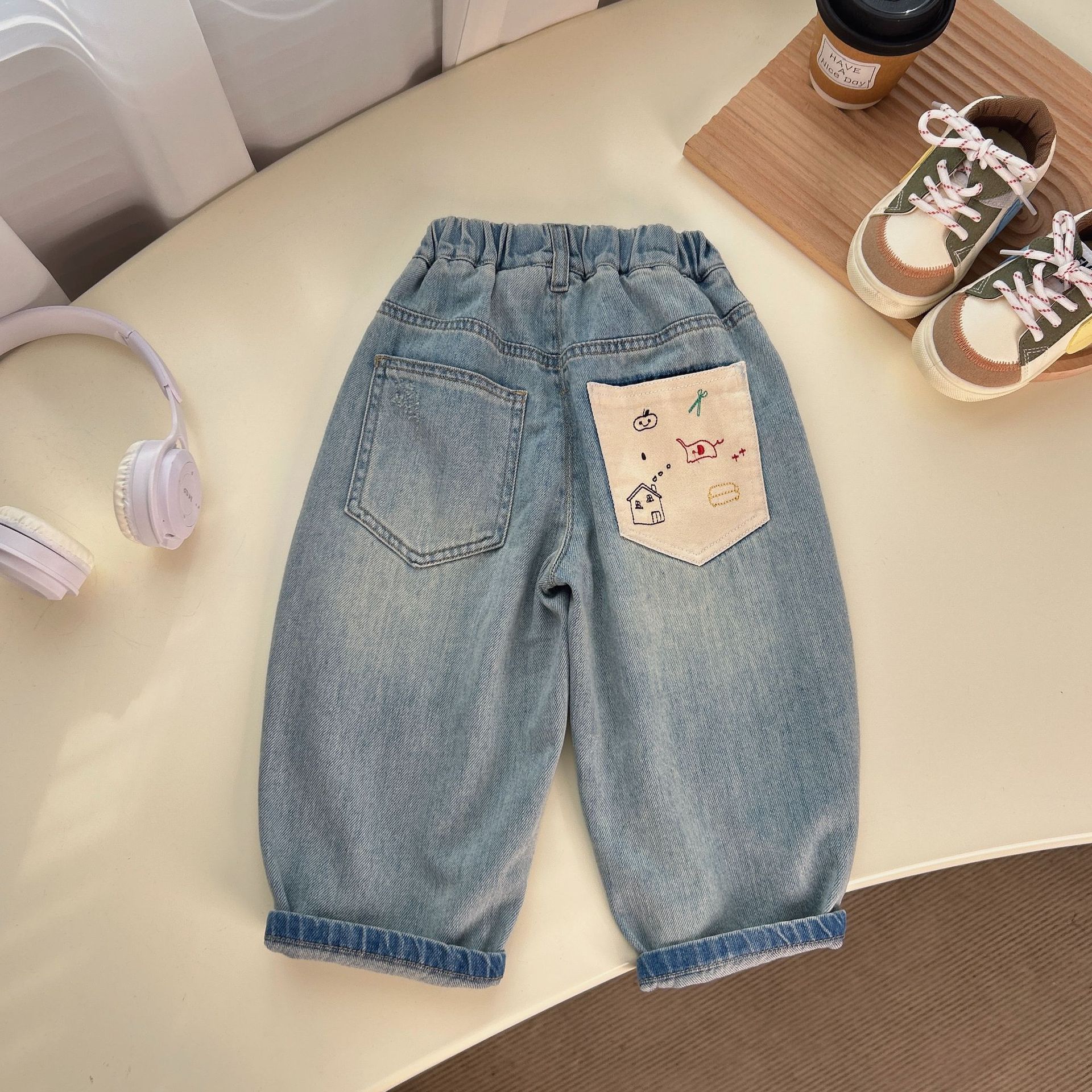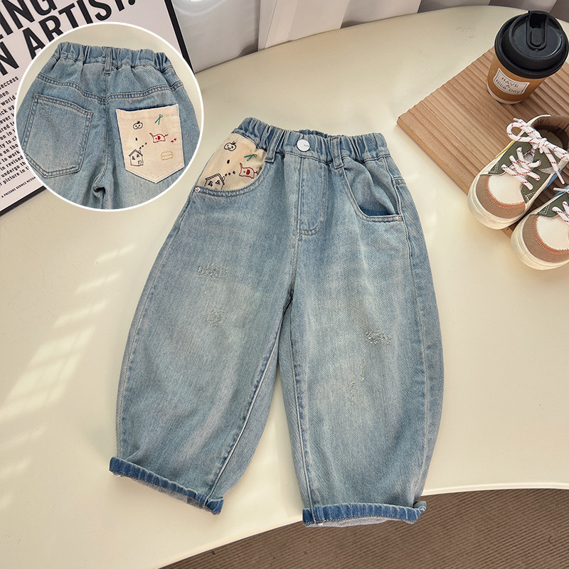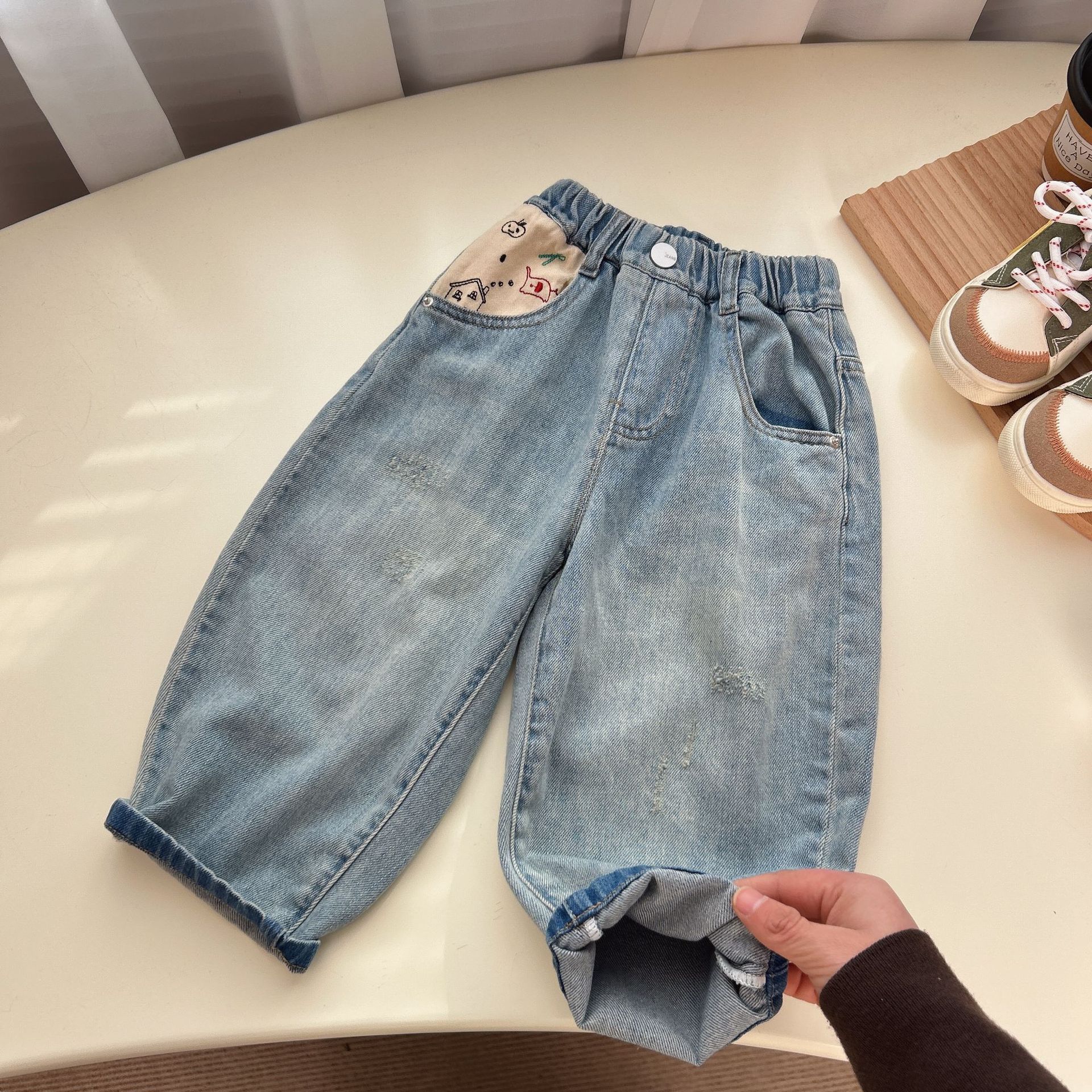 소년 얇은 청바지 여름 모기 방지 바지 2025 새로운 어린이 바지 가볍고 통기성 텐셀 데님 바지스토어 가기