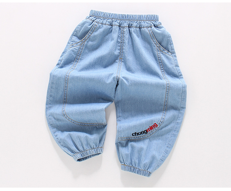 100% 면 소년 청바지 얇은 여름 하프 스타일 느슨한 부드러운 레깅스 어린이 바지스토어 가기