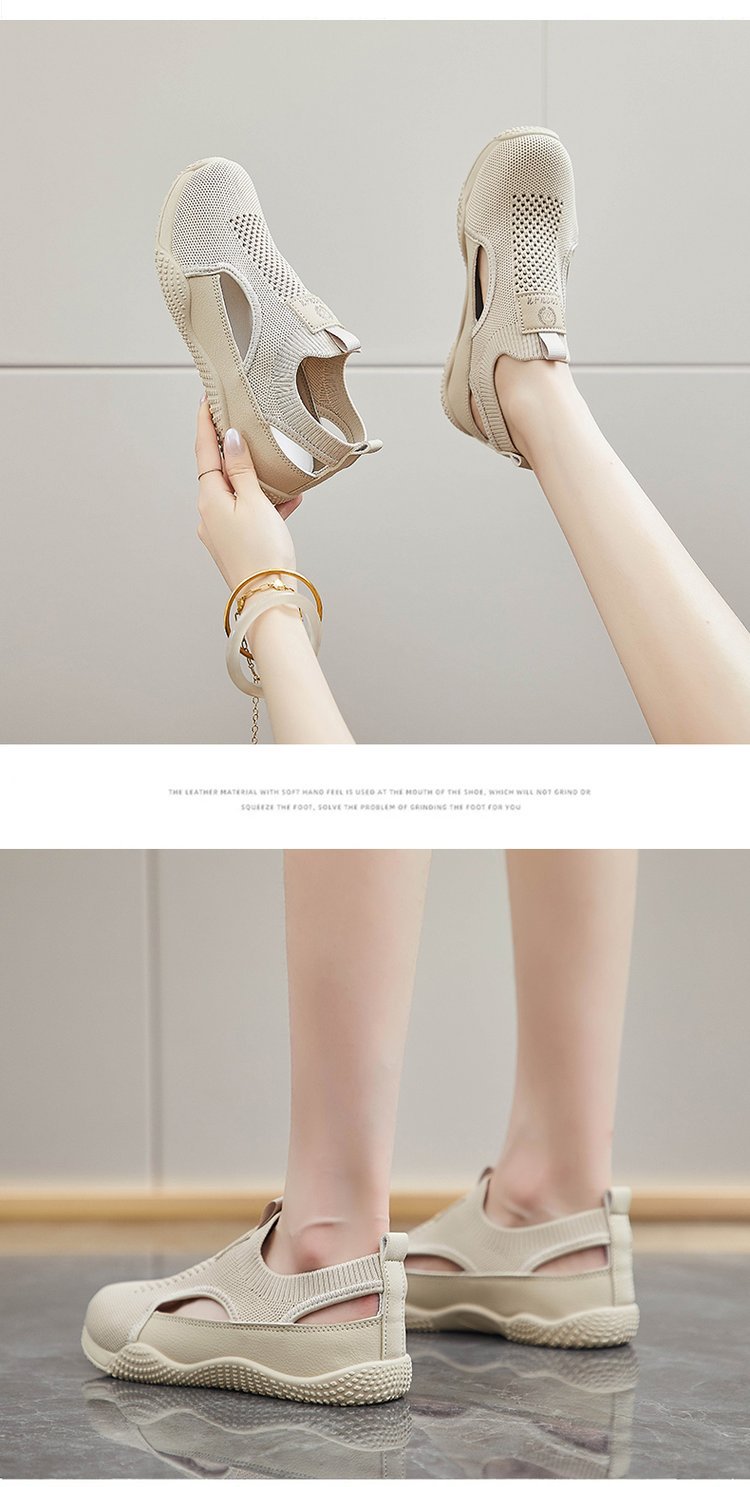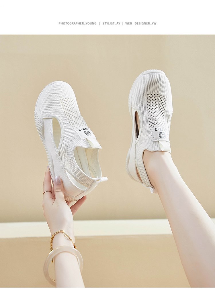 플라잉 직조 통기성 스포츠 메쉬 신발 여성 여름 새로운 소프트 하단 빈 화이트 신발 경량 메쉬 얇은 유행 샌들