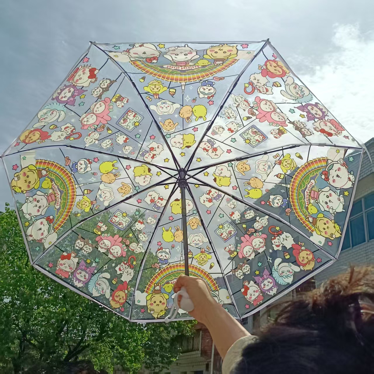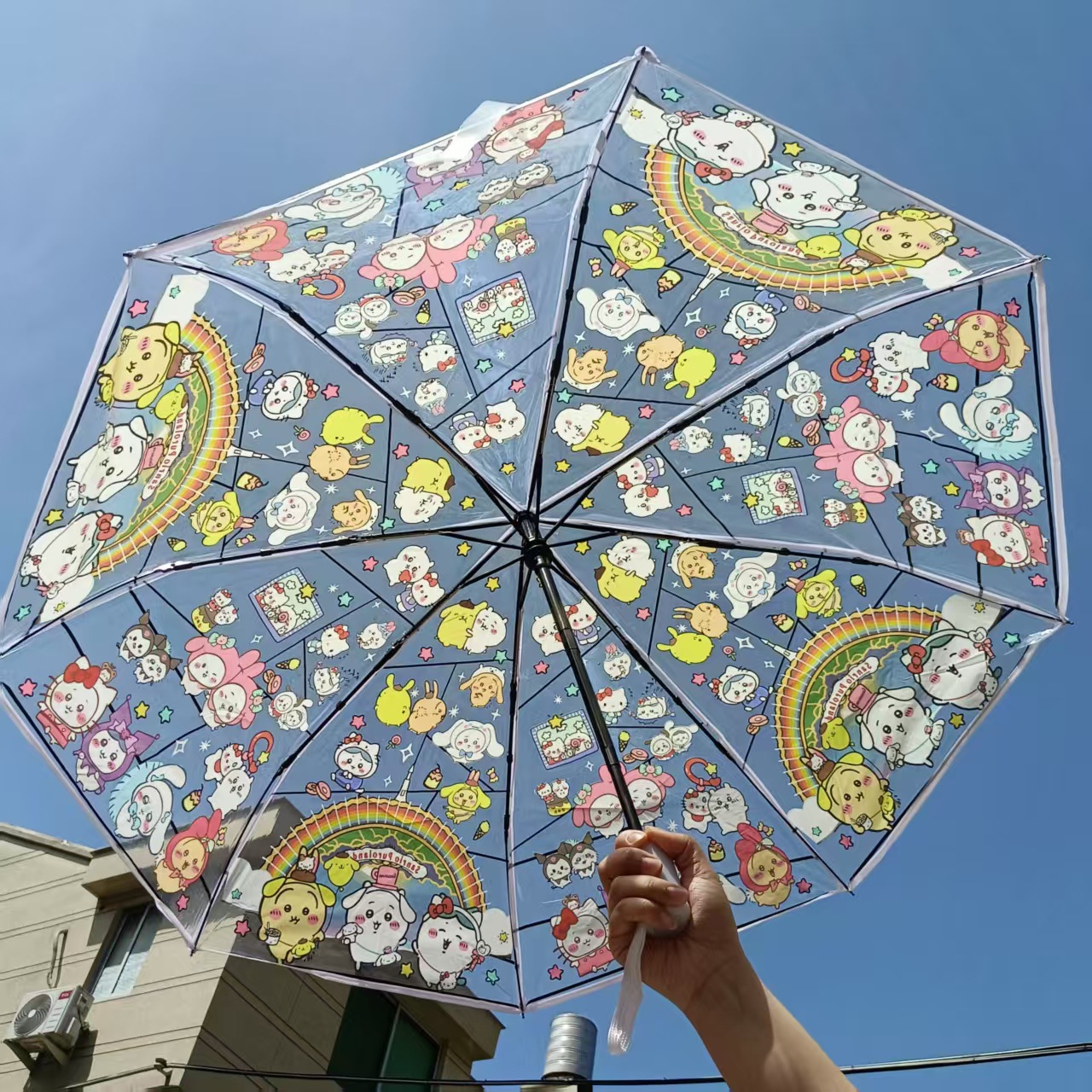 우사키 우산 남성 및 여성 학생을위한 투명 우산을 접히는 완전 자동 가이 어린이 긴 손잡이 우산 귀여운 높은 색 가치