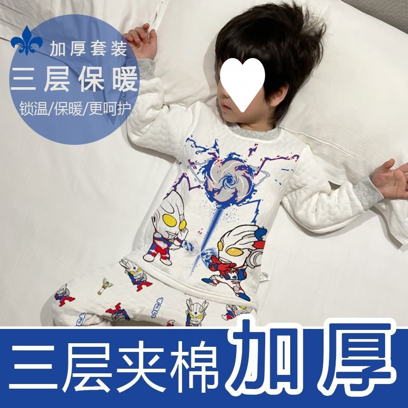 소년 잠옷 봄과 가을 순수 코튼 어린이 베이비 울트라 맨 가을 옷과 긴 바지 세트 소년 속옷 세트 가정 의류