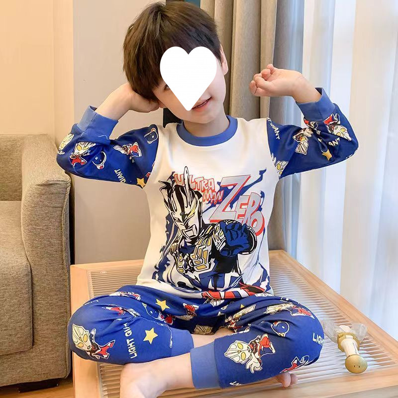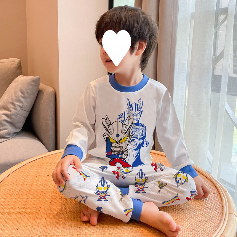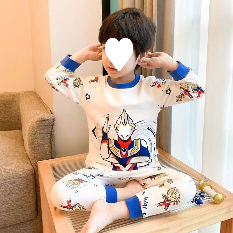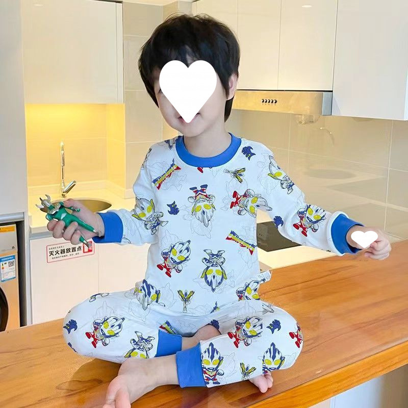 소년 잠옷 봄과 가을 순수 코튼 어린이 베이비 울트라 맨 가을 옷과 긴 바지 세트 소년 속옷 세트 가정 의류스토어 가기