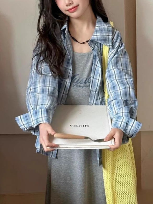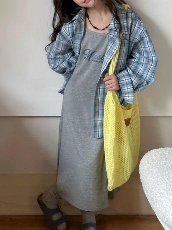 소녀의 원피스 2025 여름 새로운 아이들의 세련된 패셔드 셔츠 소녀의 캐주얼 슬립 스커트 세트스토어 가기