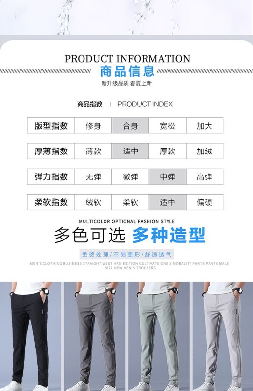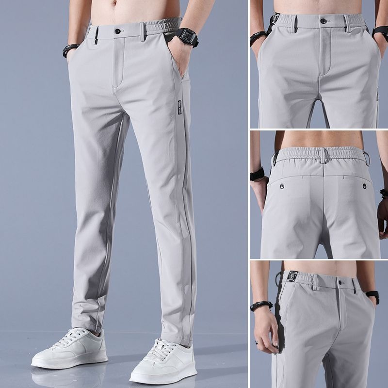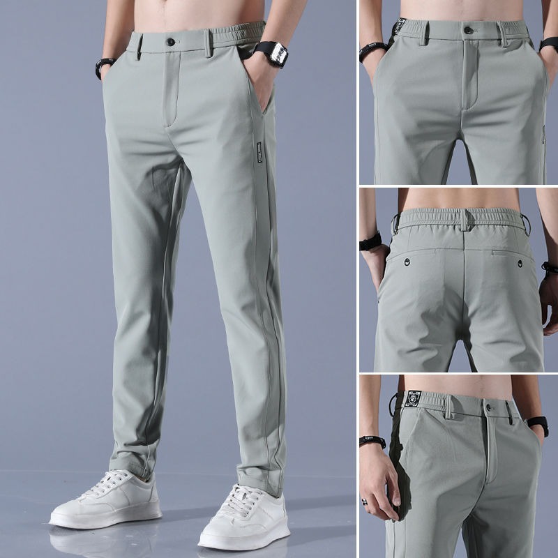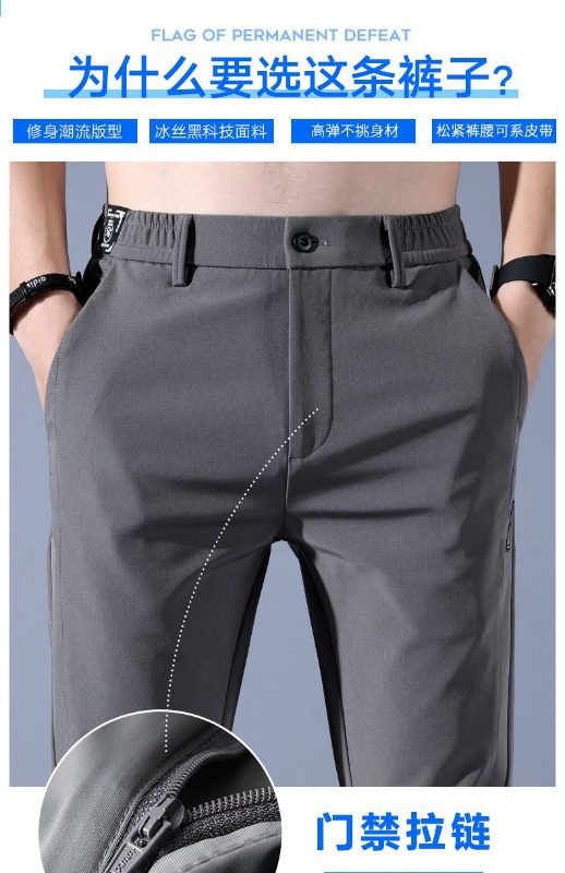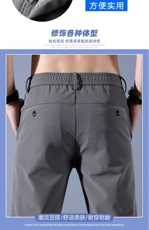 남성용 얇은 캐주얼 무다림 솔리드 컬러 바지, 대형 사이즈 루즈핏 아이스 실크 속건 캐주얼 스트레이트 바지, 제조업체 도매스토어 가기
