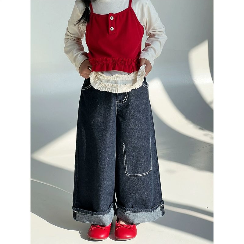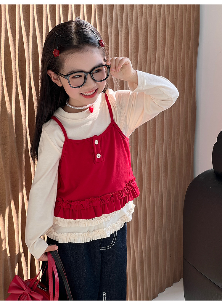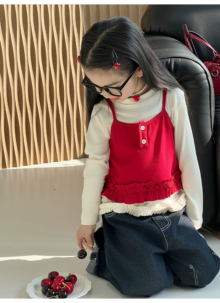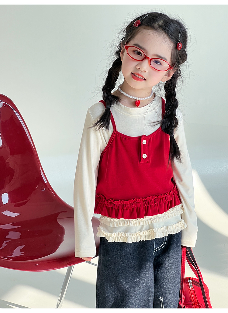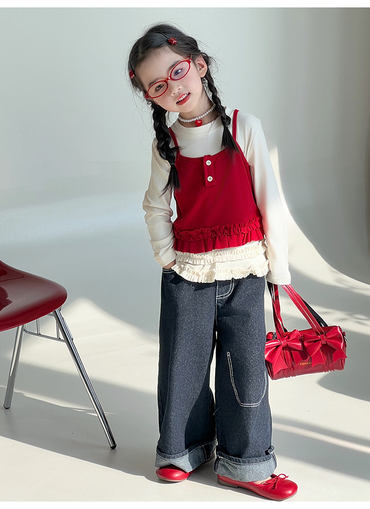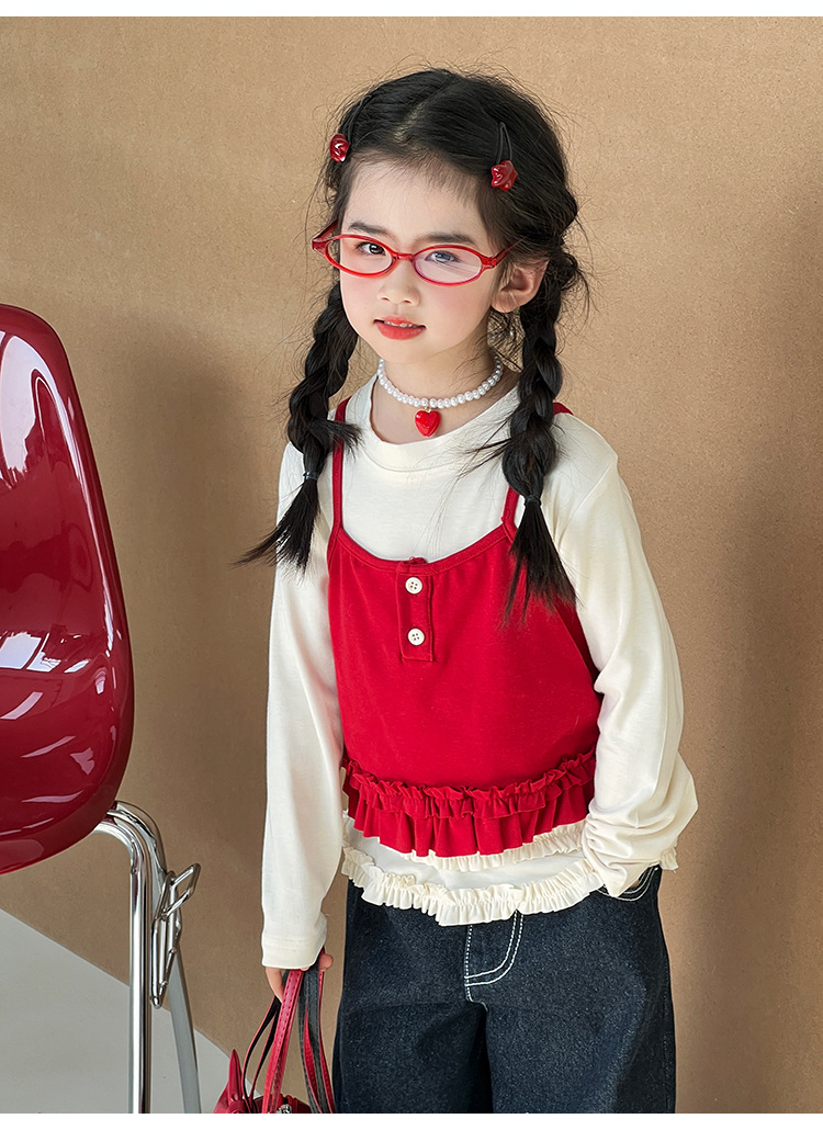 여자 정장 2025 봄 신작 어린이 레이스 조끼 바닥 셔츠 조끼 긴팔 탑 티셔츠 투피스 세트스토어 가기