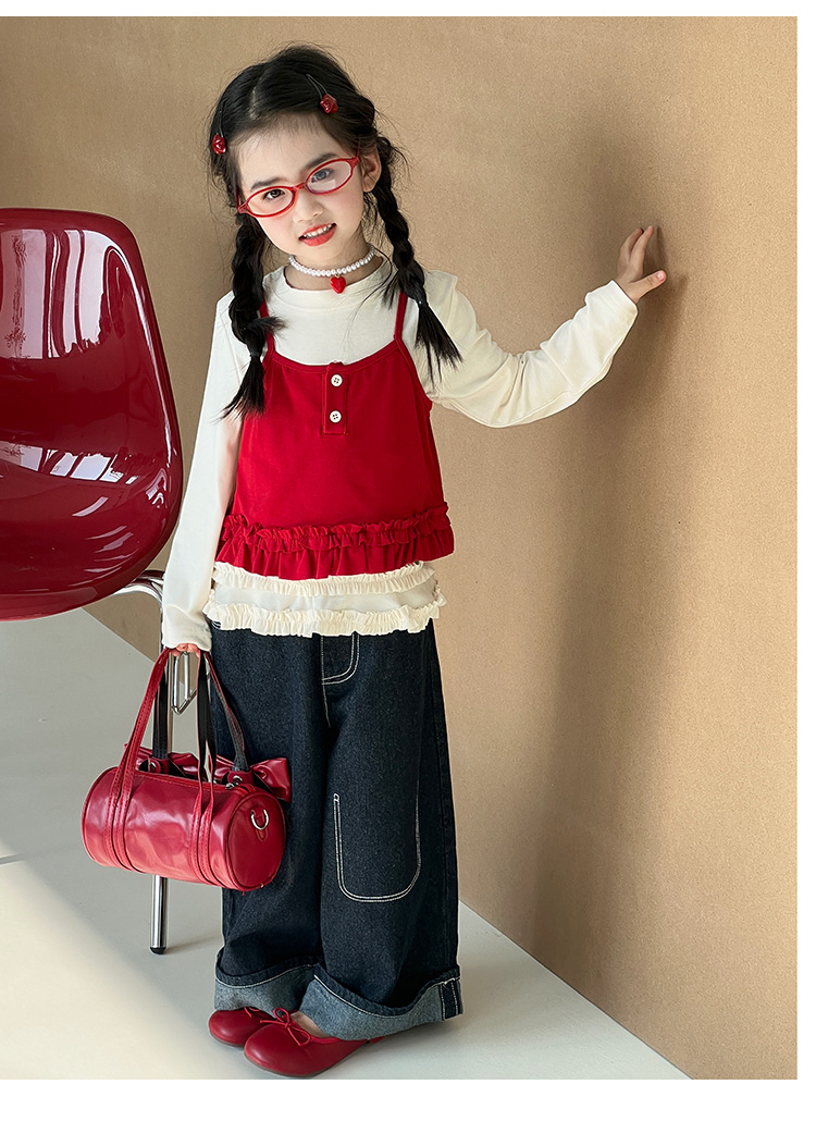 • 레드 서스펜더+바텀 셔츠 투피스 세트