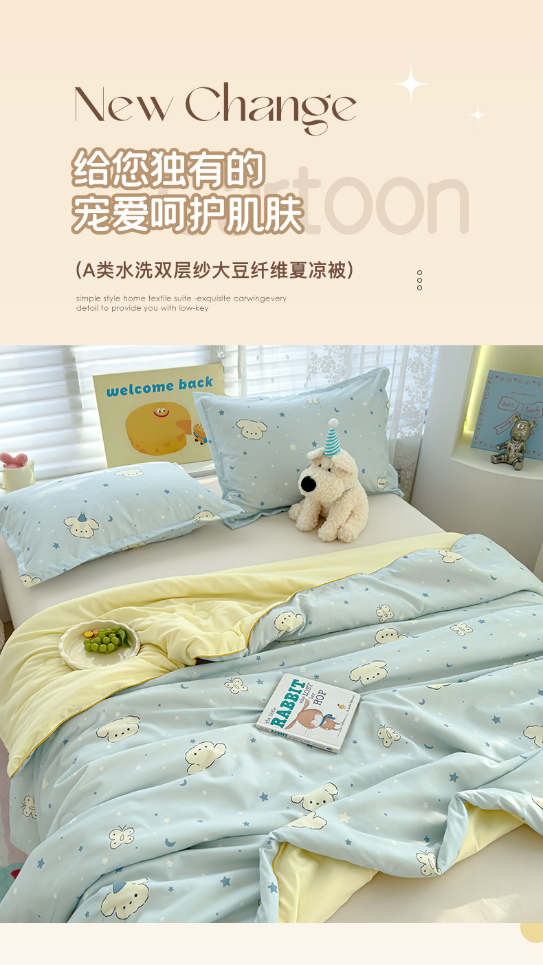 여름 클래스 콩 섬유 이중층 원사 여름 시원한 이불 모성 및 유아 학년 어린이 낮잠 여름 이불 기계 세탁기 에어컨 이불 코어스토어 가기