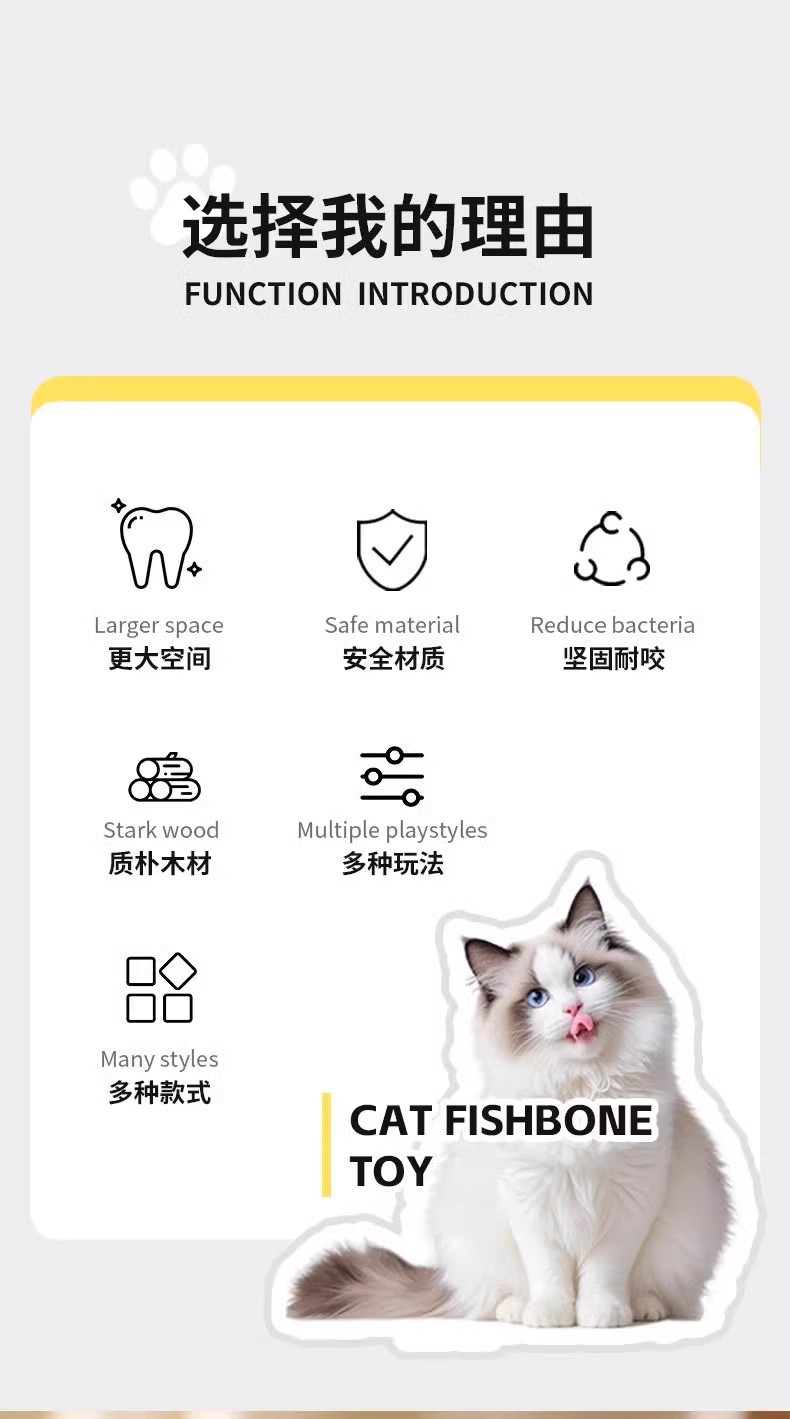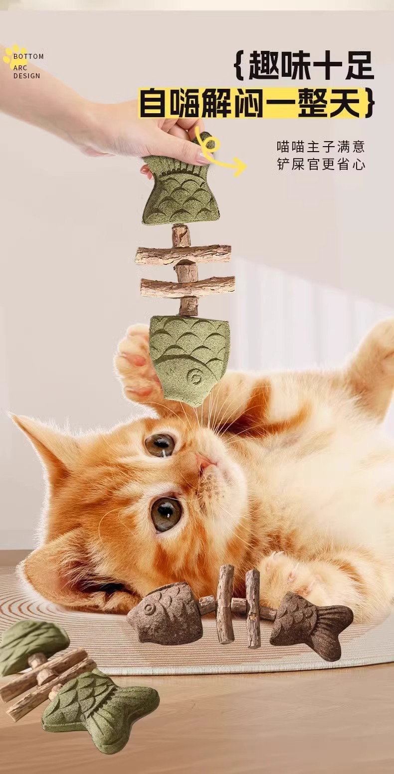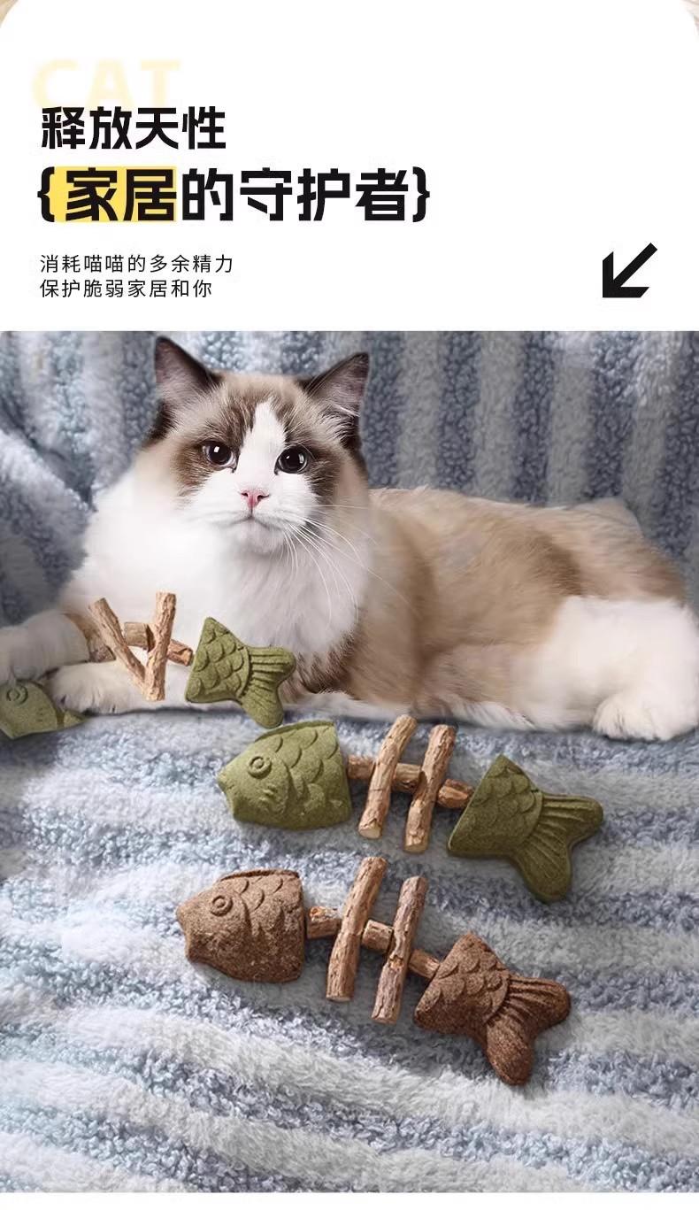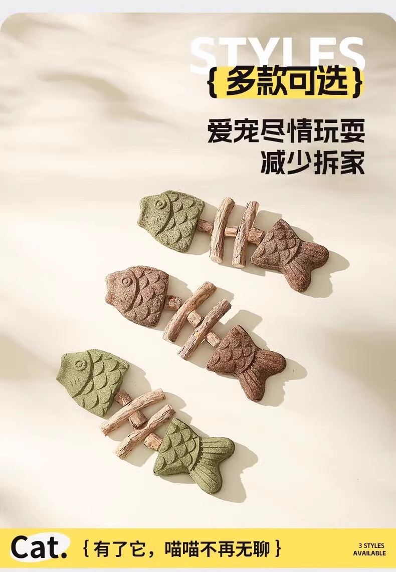 고양이 장난감 물고기 뼈 나무 고양이 민트 치아 스틱 시뮬레이션 물고기 치아 스틱 물림 방지 자체 즐거움과 지루함 해소 고양이 스틱스토어 가기