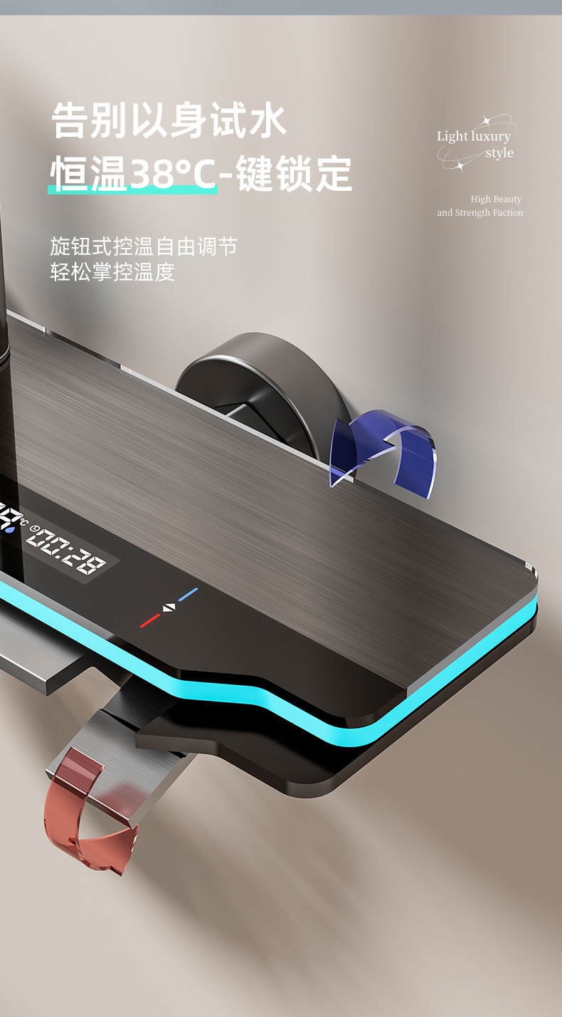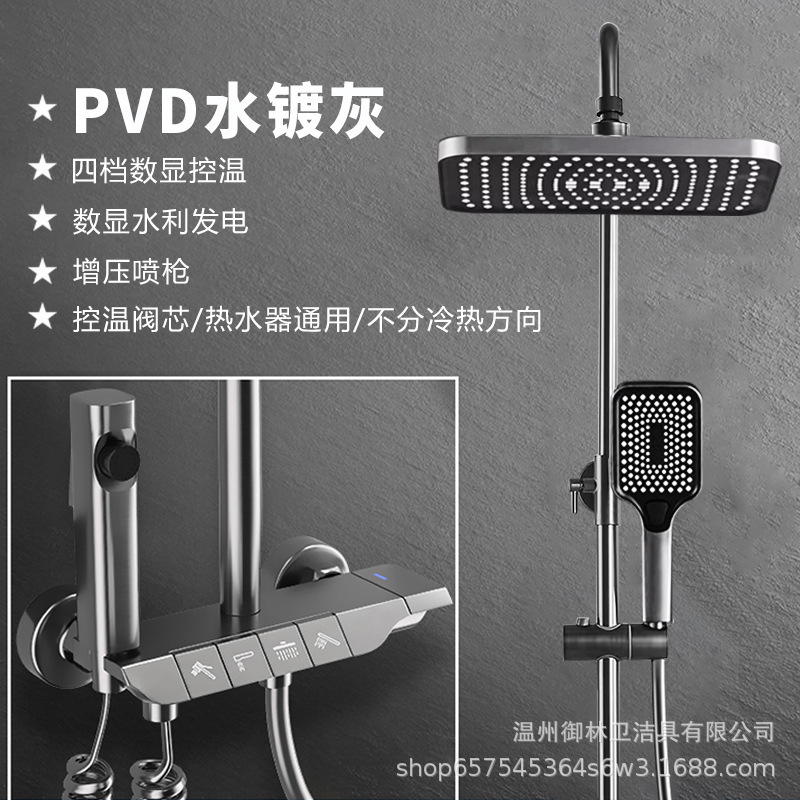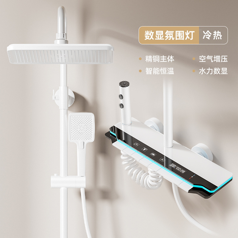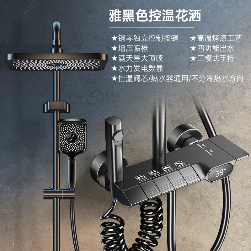 샤워 헤드 세트 도매 욕실 피아노 키 디지털 디스플레이 일정한 온도 전체 구리 가압 샤워 헤드 호텔 욕실 사용