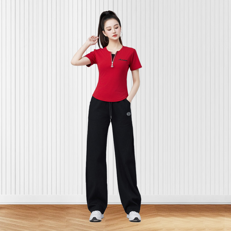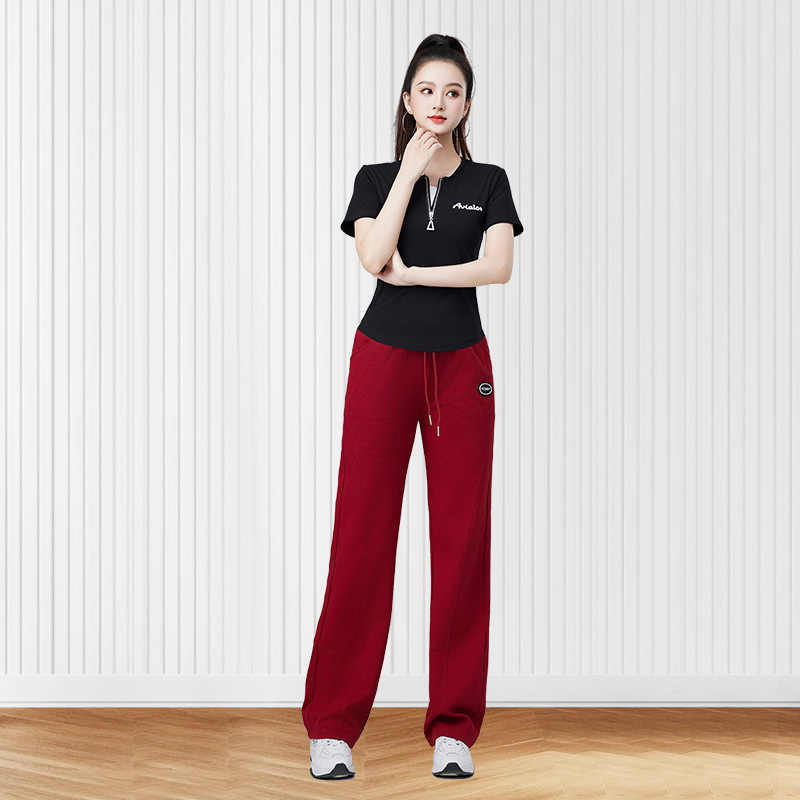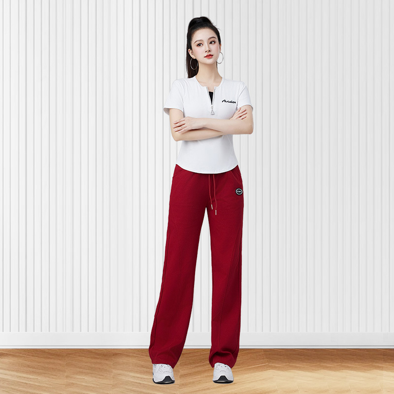 여름 새로운 높은 허리 캐주얼 스포츠 Machete 바지 여성 패션 느슨한 바지 캐주얼 스퀘어 댄스 세트 2506