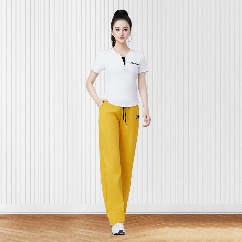여름 새로운 높은 허리 캐주얼 스포츠 Machete 바지 여성 패션 느슨한 바지 캐주얼 스퀘어 댄스 세트 2506스토어 가기