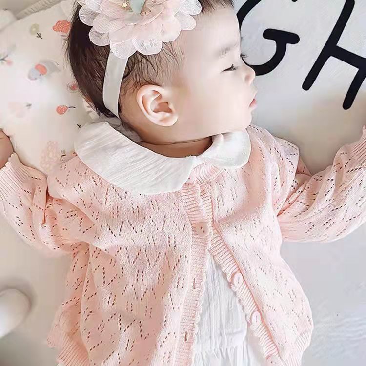 2025 새로운 여름 어린이 에어컨 카디건 얇은 아기 여름 옷 아기 니트 코튼 중공 긴팔 스웨터스토어 가기