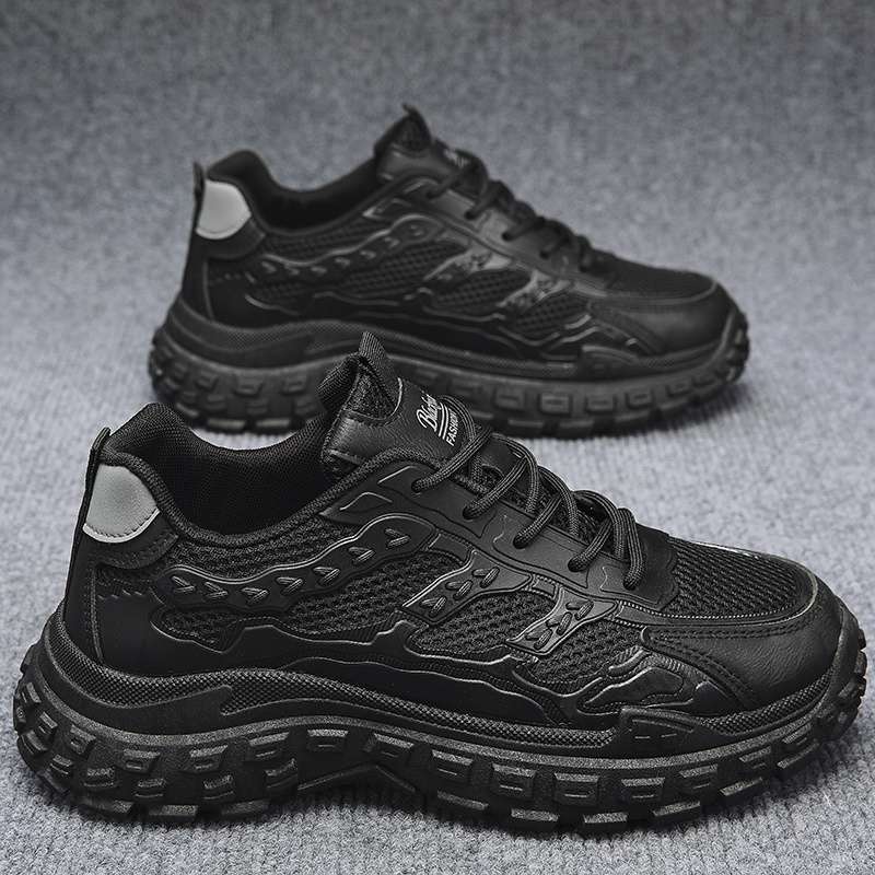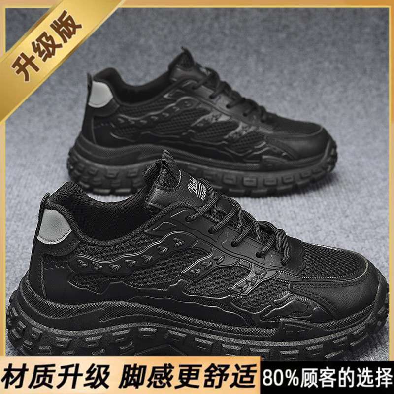 劳保鞋男夏季透气耐磨防滑轮胎底工作鞋男士黑色运动增高老爹潮鞋