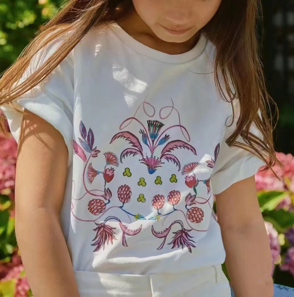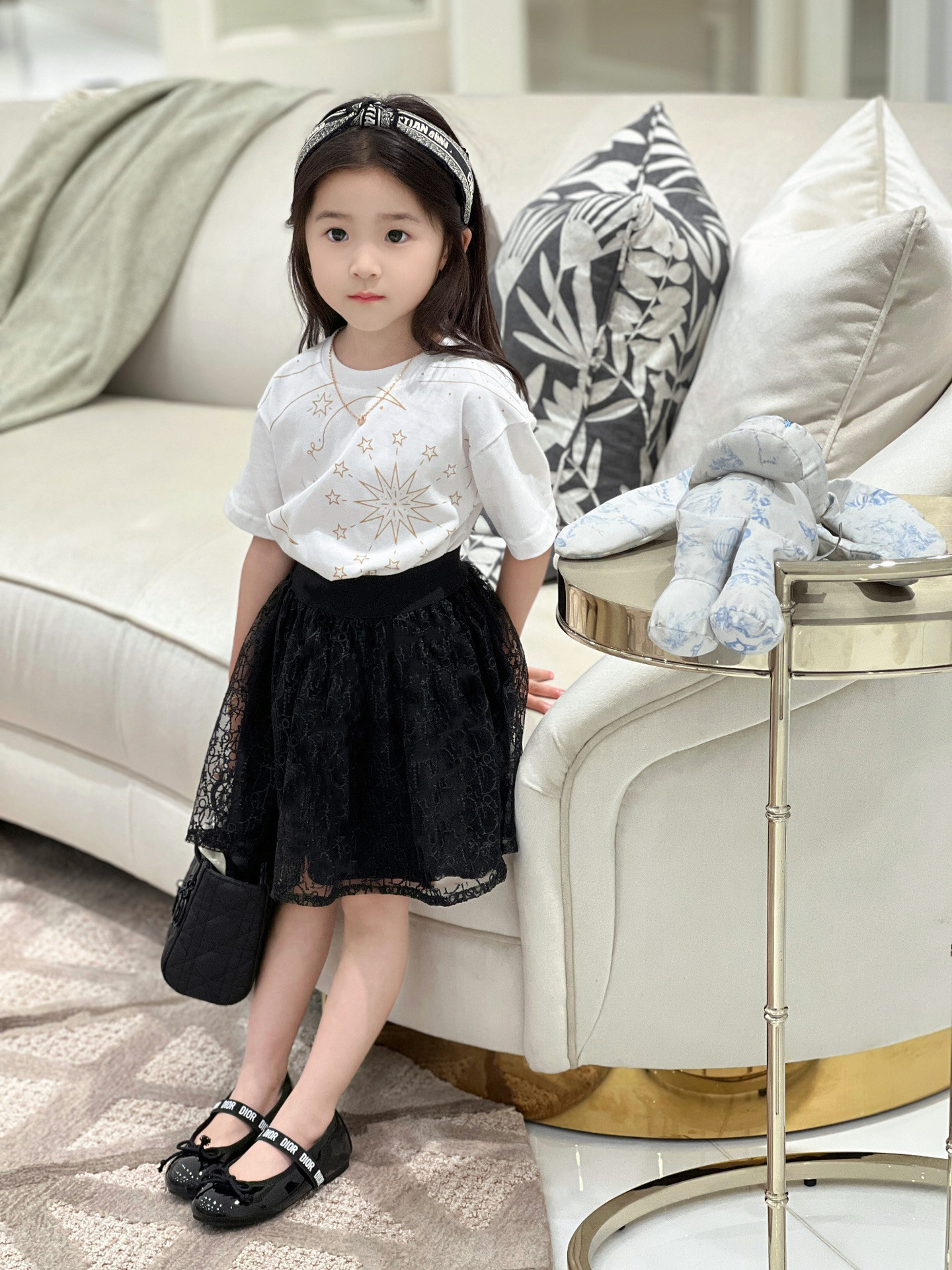 고급 아동복, 여아 전면 자수 아동 스커트, 거즈 스커트, 별과 달 반팔 티셔츠스토어 가기