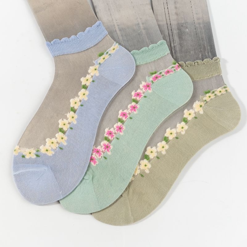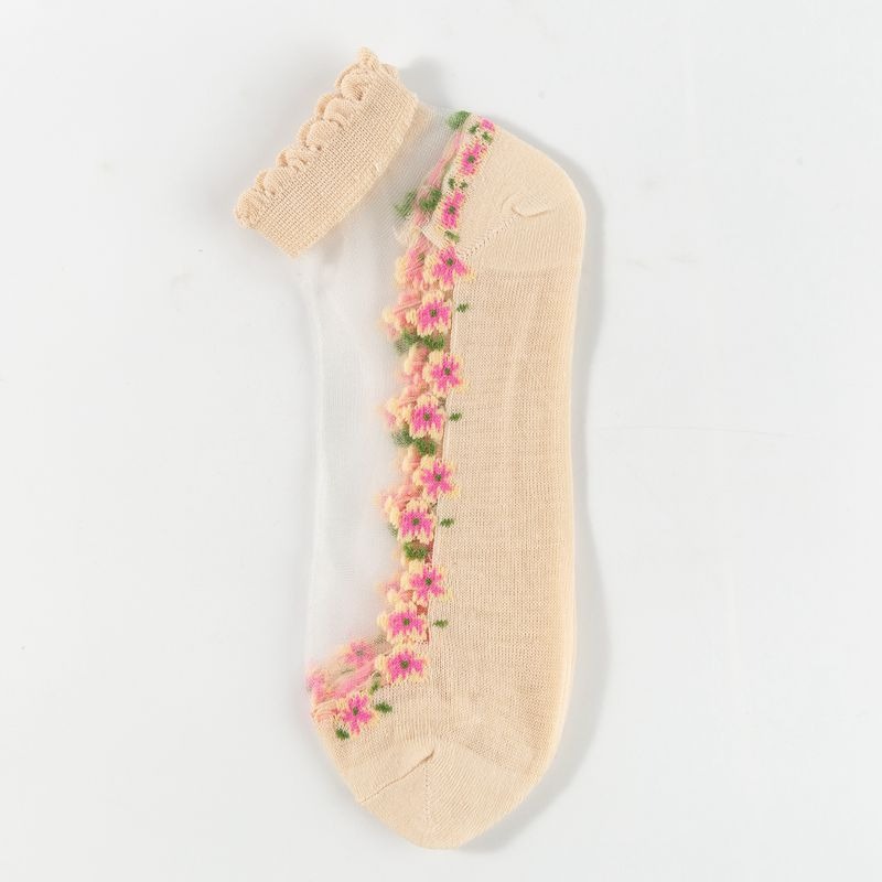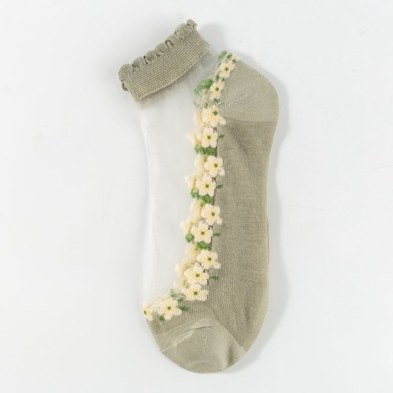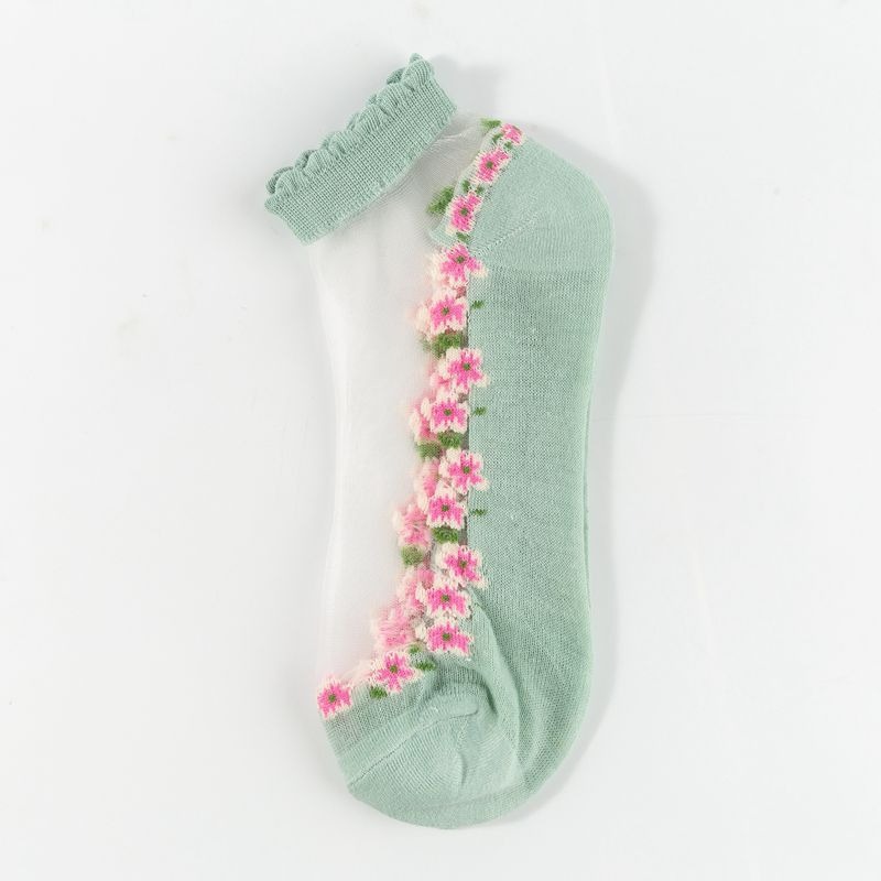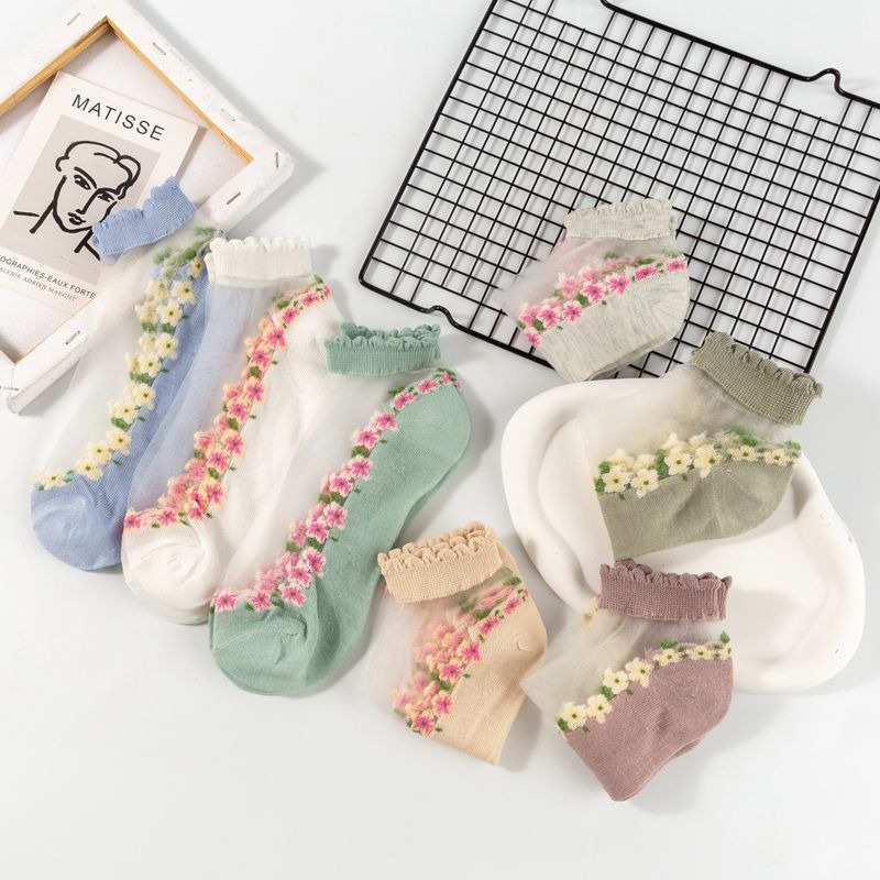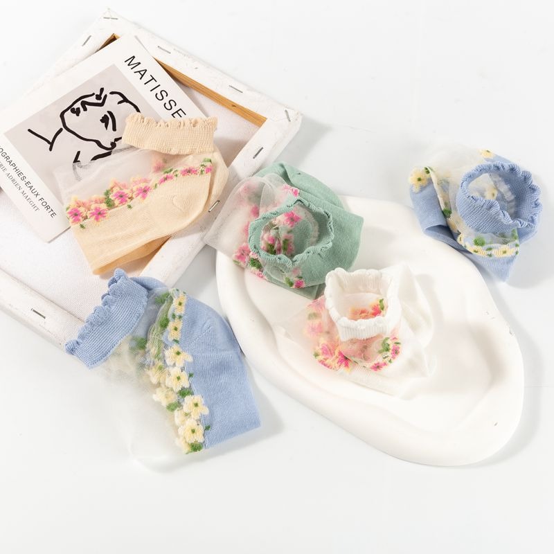양말 여성 여름 얇은 유리 실크 꽃 양말 일본 달콤한 크리스탈 레이스 양말 짧은 튜브 보이지 않는 통기성 보트 양말스토어 가기